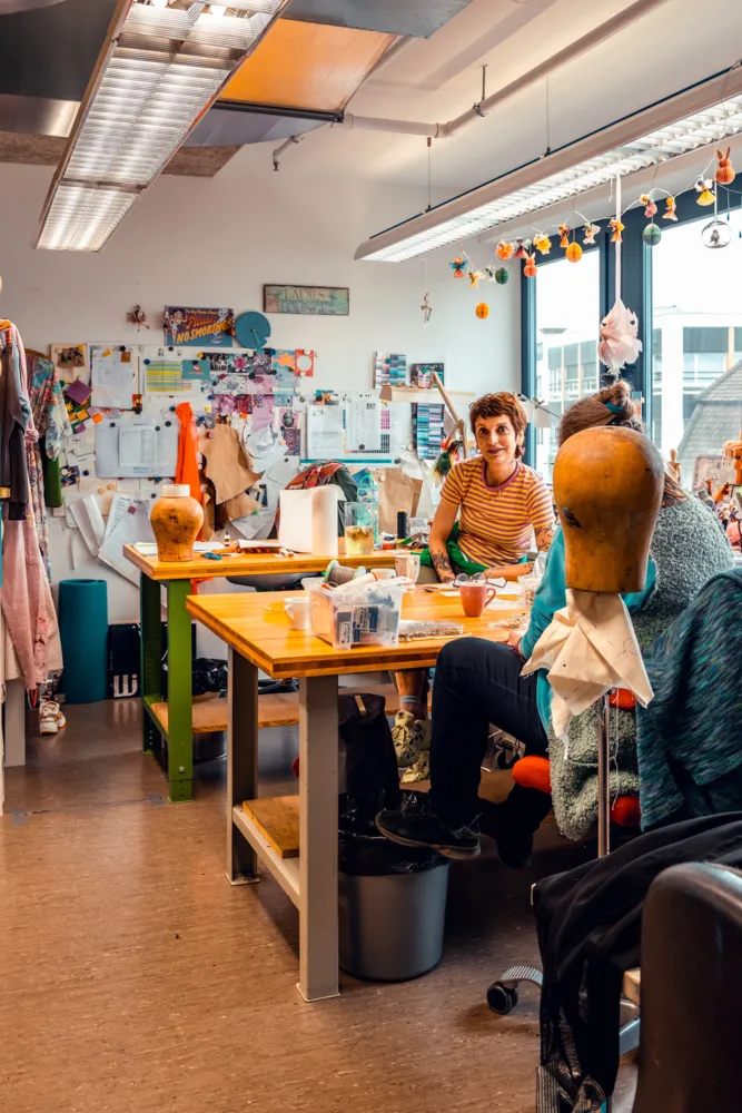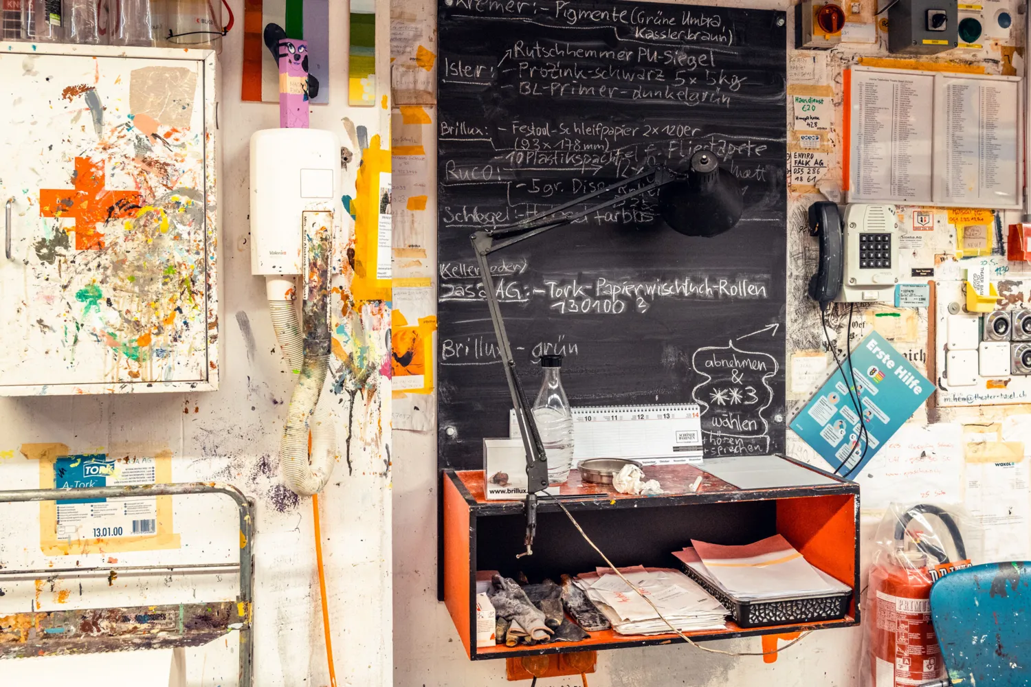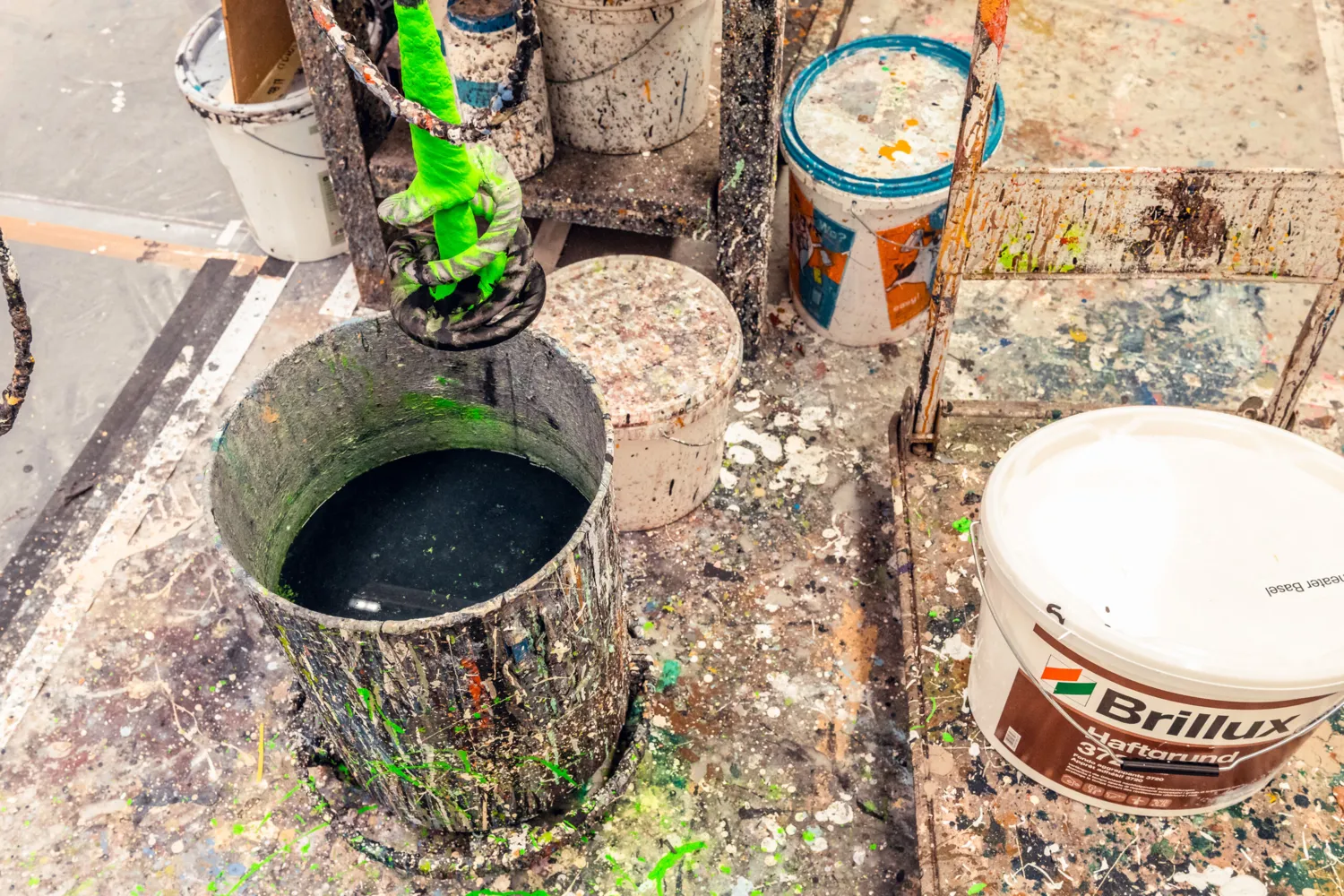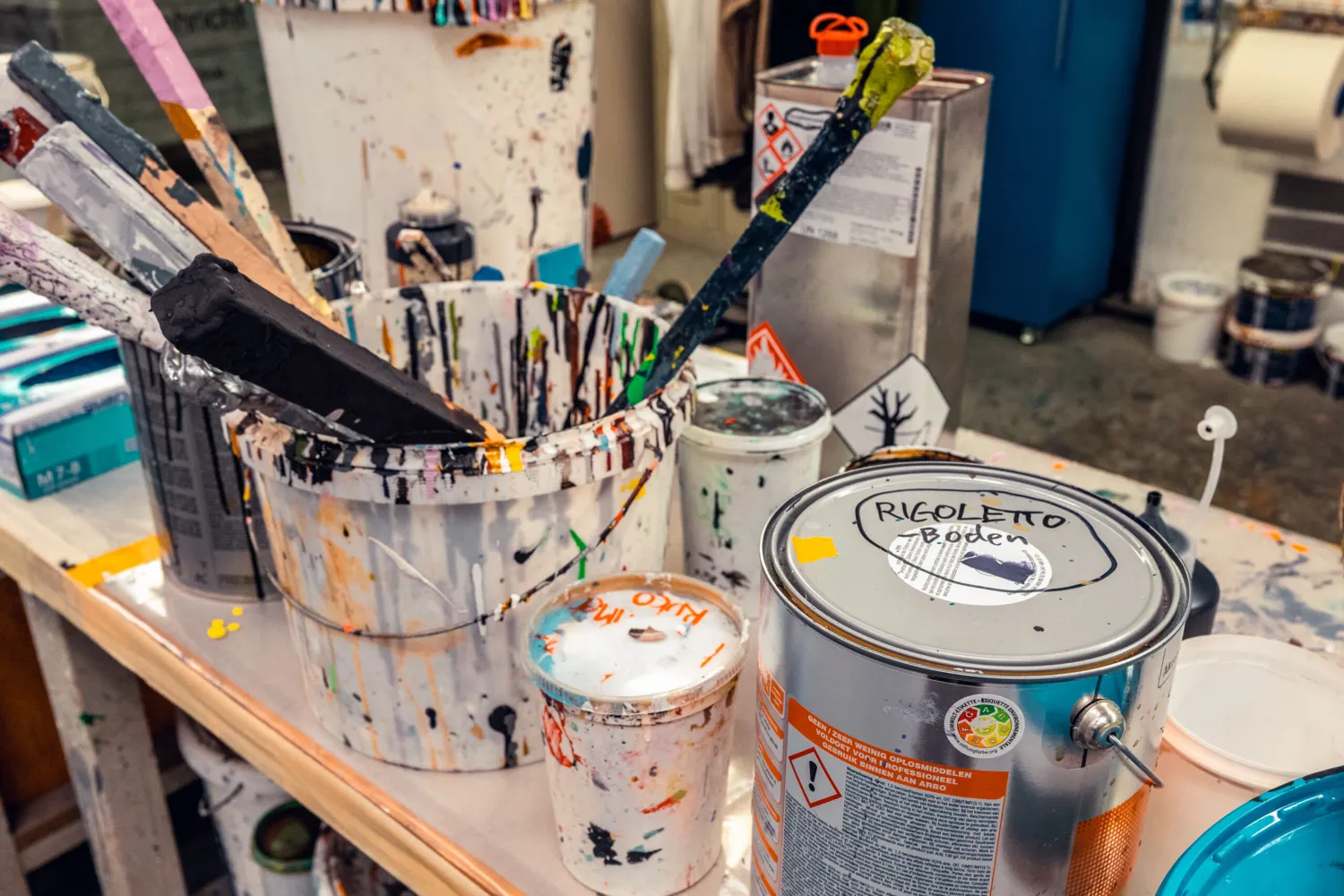 Mit dem monströsen Lift geht es runter in die Katakomben. Es wird laut. Sägekreischen, Schleifmaschinengeheul, Gehämmer. Wir sind in den Werkstätten. Konstrukteure, Bühnenbildner, Plastiker, Schreiner, Schlosser – sie alle arbeiten hier an den Bühnenbildern. Rund 25 neue gibt es pro Spielzeit. «Jeweils am Morgen wird das Bühnenbild vom letzten Abend abgebaut und das Probe-Bühnenbild montiert. Am Nachmittag nach den Proben wird alles wieder versorgt und die Kulisse für den Abend aufgestellt. Äusserst personalintensiv das Ganze – aber toll fürs Publikum!», meint Anja. Im Malsaal, der direkt unter den Glas-Pyramiden liegt, weist sie mich auf die gespannten Netze an der Decke hin. «Wegen den Kindern, die oben gerne auf den Pyramiden herumklettern, regnet es hier unten immer wieder Steinchen und Mörtel …» Die Wand hängt voller Gemälde: Rembrandt, Anker, van Gogh? Nein, Abschlussarbeiten der Lernenden. Und überall Plastiken: Ein goldenes Ohr, ein Drachenkopf, Kakerlaken, ein weisser Hai. Ein Nashorn hat eine überdimensionale Orange aufgespiesst. Staffeleien, Tische, Stühle und Böden sind übersäht mit Farbklecksen.