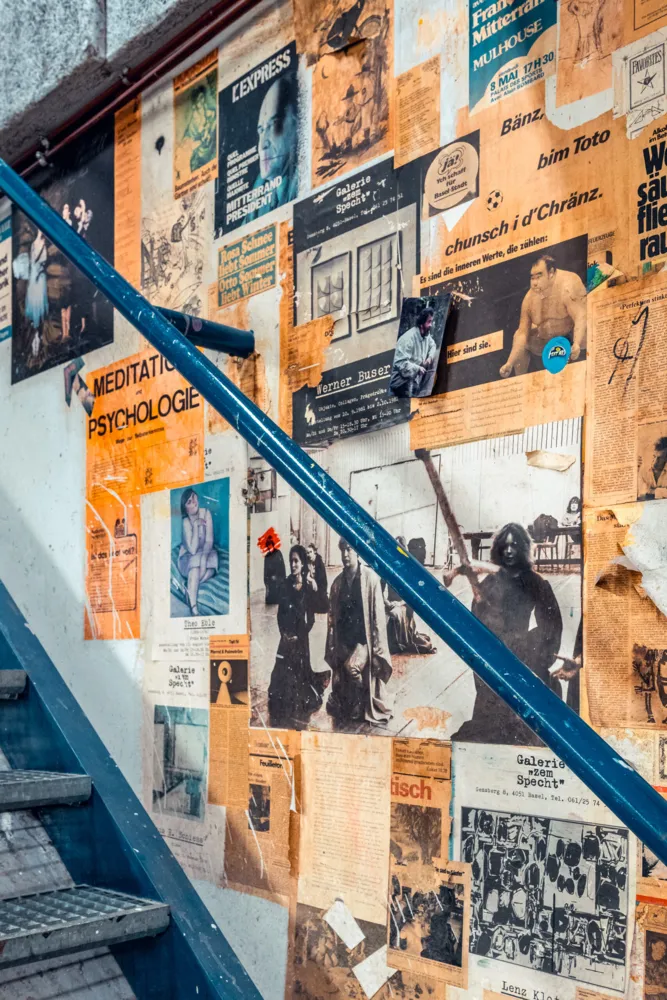 Anja empfängt mich am Theaterplatz, der offiziell gar keinen Namen hat, weil er lediglich das Dach eines Parkhauses ist und darum aus statischen Gründen für kaum etwas zu gebrauchen. Ein dunkler Seiteneingang führt uns direkt zu einem historischen Eisentor. Der Sandstein der Elisabethenkirche berührt hier den Beton des Theaters. «Denkmalschutz in den 1970er Jahren? Fehlanzeige», lacht Anja. «Das Theater wurde Mauer an Mauer an die Elisabethenkirche drangebaut. Vom Theater aus führt eine Tür direkt in die Gruft der Familie Merian.» Überhaupt bietet der Bau der Architekten Schwarz & Gutmann einige Besonderheiten. Das riesige Betondach, Symbol eines Zirkuszelts, ist an der dünnsten Stelle gerade einmal 12 Zentimeter dick. «Die Architekten hatten nie zuvor ein Theater gebaut. Darum haben sie auch die Billettkasse vergessen. Sie wurde nachträglich eingebaut, war viel zu klein. Darum ist sie heute im Theater drin», weiss Anja. Nicht vergessen wurde hingegen der Bunker. Er erstreckt sich über weite Flächen im Untergeschoss, unterteilt durch unzählige Türen, Duschen und Toilettenanlagen inklusive – ein etwas unheimlicher Irrgarten, der heute als Kostümlager dient.