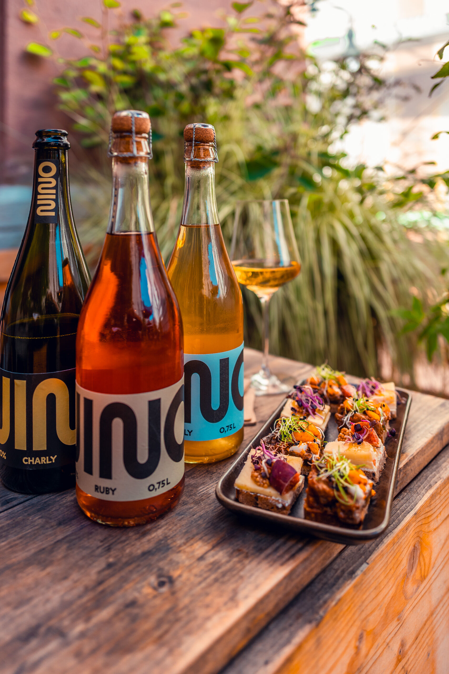 Es ist 11 Uhr vormittags, als er eine Flasche Charly öffnet, einen der drei Nino-Sorten, die es derzeit auf dem Markt gibt. Der Korken ploppt, der Charly sprudelt im Glas. Prickelt im Mund so schön wie Prosecco, schmeckt im Gaumen harmonisch fruchtig, schreit im Kopf nach mehr – alles ohne ein Promillchen Alkohol. Ein wahrer Aha-Moment ist das für mich, die ich in den letzten Monaten mit entalkoholisierten Weinen vor allem Oje-Momente hatte. Der feine Unterschied: Im Gegensatz zu einem 0%igen Wein wird dem Nino der Alkohol nicht entzogen; er wird von Anfang an ohne Alkohol aufgebaut. Ihm fehlt nichts und das schmecke ich.