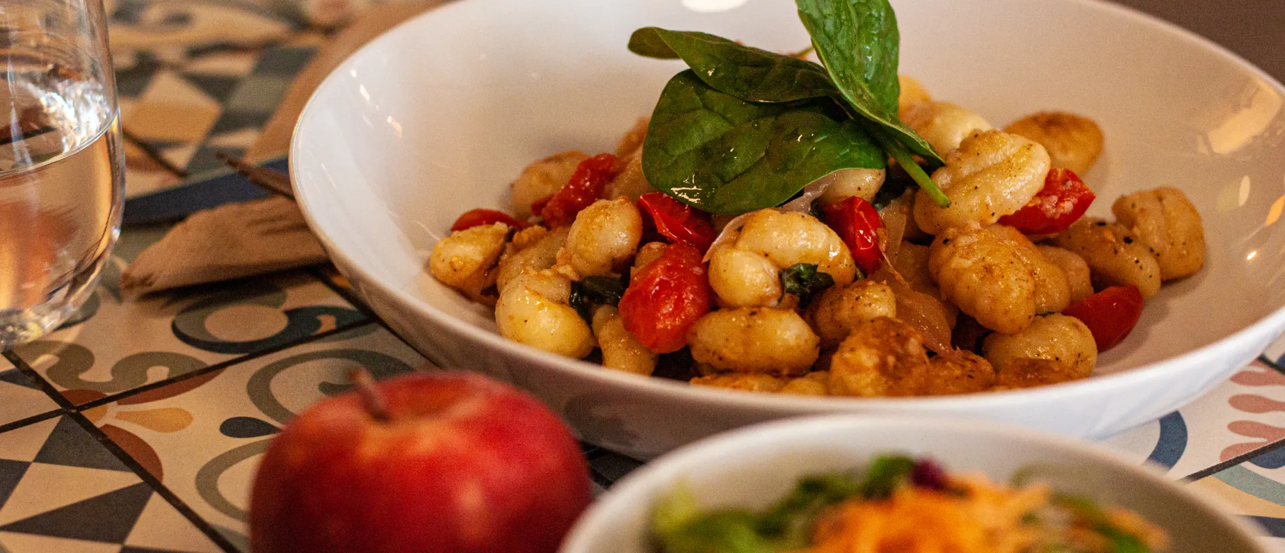Mittags gibt es an der Theaterstrasse nun für rund 14 Franken lokale, herzhafte Köstlichkeiten in vegetarischer Form oder mit Fleisch. Zum Beispiel leckere Gnocchi an getrockneten Tomaten und Basilikum, Poulet Cordonbleu oder mit mexikanischem Gemüsereis gefüllte Tortillas. Das Menü wechselt täglich. Vorspeise, Hauptgang, Dessert: alles auch zum Mitnehmen.