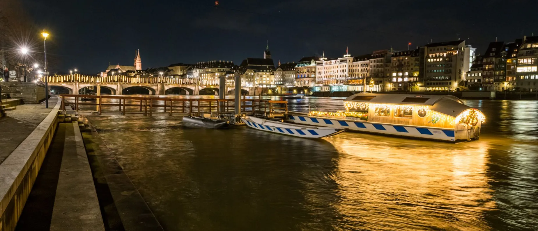 Eine Fahrt mit der Fähri ist immer schön – in der Weihnachtszeit aber ganz besonders! Denn nie präsentiert sich dir deine Stadt in einem solch prachtvollen, romantischen und bezaubernden Gewand wie in der Weihnachtszeit! Die Aussicht auf die weihnächtlich geschmückte Mittlere Brücke, das Basler Münster und die Millionen sich auf der Wasseroberfläche reflektierenden Lichtlein ist einmalig. Mache deinem Partner, deinen Freunden oder dir selbst eine Freude – die Fahrt auf der Wiehnachts-Fähri bietet ein unvergessliches Erlebnis!