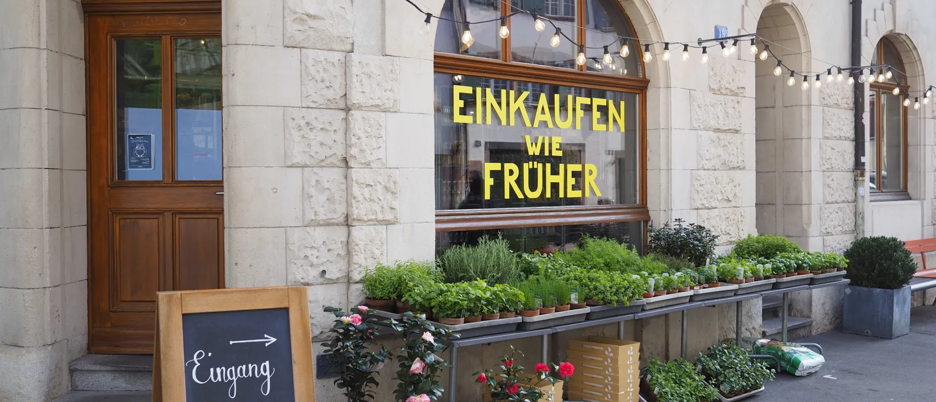 «Einkaufen wie früher» steht in grossen Buchstaben an der Fensterscheibe angeschrieben. Zu kaufen gibt's im temporären Lebensmittellädeli Consum also nur das Nötigste, sprich Gemüse, Früchte, Käse, Brot, Mehl, Fleisch- und Wurstwaren, ja sogar frische Kräuter zum Kochen – alles Produkte von Lieferanten, die das Consum und die restlichen Hotel- und Gastronomiebetriebe der Krafft-Gruppe auch sonst mit Frischem und Regionalem eindecken. Im umfunktionierten Consum können die Lieferanten somit auch in diesen turbulenten Zeiten einen Teil ihrer Ware anbieten und die Anwohner der Rheingasse und angrenzenden Kleinbasler Gassen mit dem Nötigsten versorgen.