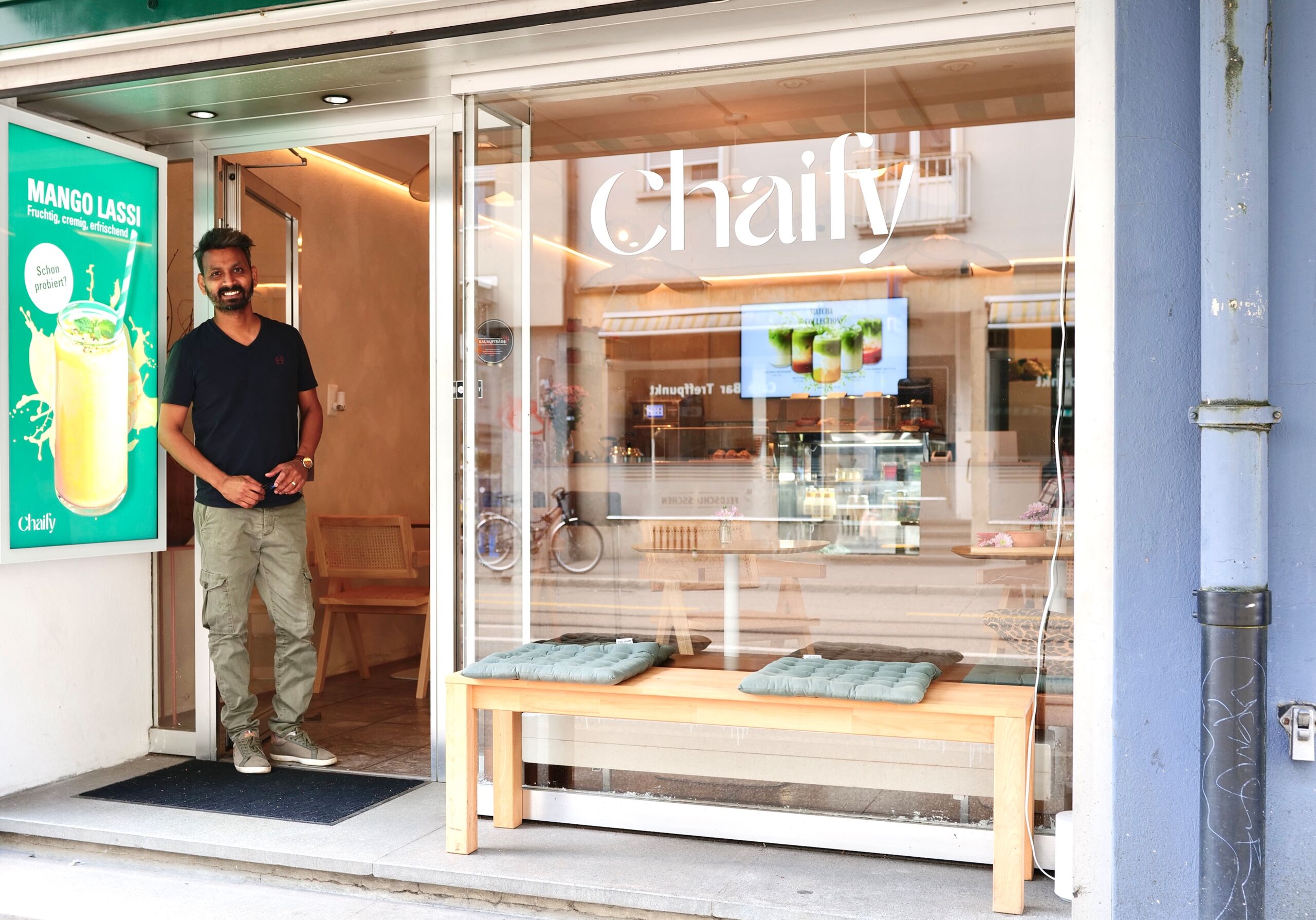 Aus seiner Leidenschaft fürs Kochen, seiner Risikofreude und seiner Lust, neue Dinge anzupacken, ist im Frühjahr 2025 das Chaify entstanden. Ein gemütliches kleines Bistro mit zehn Sitzplätzen an der Elsässerstrasse. Das Angebot: Frisch gebrühter Chai, Matcha in verschiedenen saisonalen Ausführungen, Mango Lassi, Ingwershots, zudem Chicken Tikka, Samosa und auch mal Kichererbsen-Sundal. «99% der Lebensmittel sind hausgemacht von meiner Frau», erzählt Jee nicht ohne Stolz. Sein Ziel: Er will das Essen seiner Heimat für die Menschen verständlich machen. «Wenn die Leute einen Blätterteig sehen, dann kennen sie das. Auch wenn der Teig mit Chicken Tikka gefüllt ist. Und ein Samosa lässt sich problemlos mit Raclettekäse füllen.»
