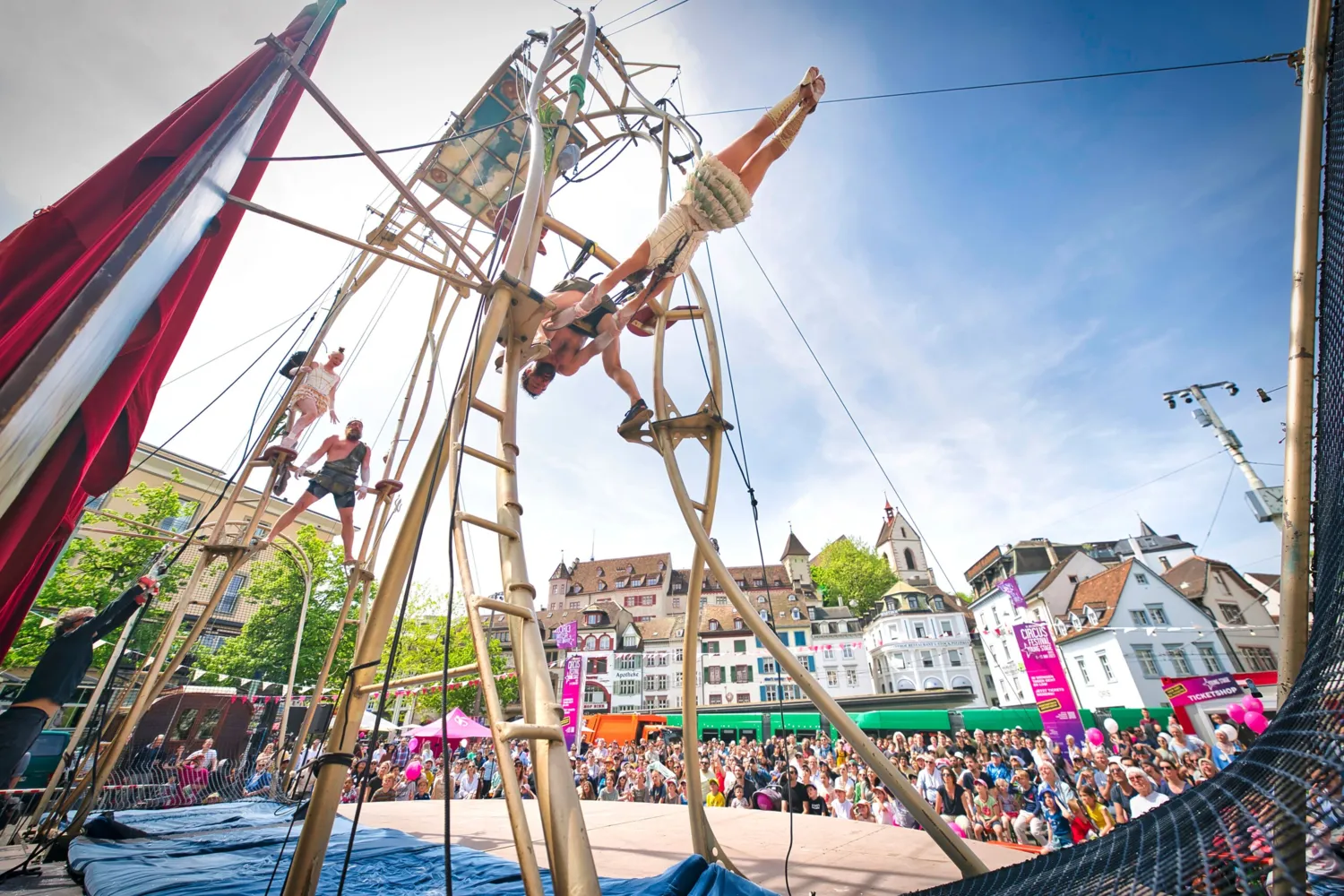 Openair Live-Akrobatik am Samstag und Sonntag, 27. und 28. April 2024, auf dem Barfüsserplatz