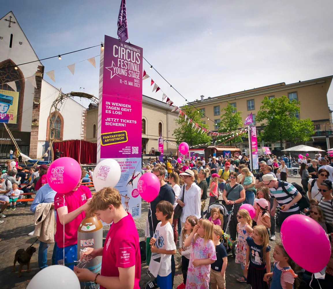 Frei, kreativ und unheimlich talentiert! Das ist die mobile, international besetzte YOUNG STAGE Circus Truppe, welche durch die Strassen Basels zieht und Gross sowie Klein für den Circus begeistern wird. Mit Live-Musik und wehenden Fahnen tritt die Gruppe an beliebten Plätzen in Basel auf und wird die Basler Bevölkerung am Samstag, 27. April 2024 zum Staunen bringen.