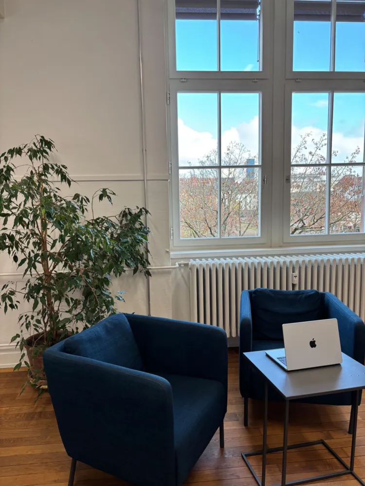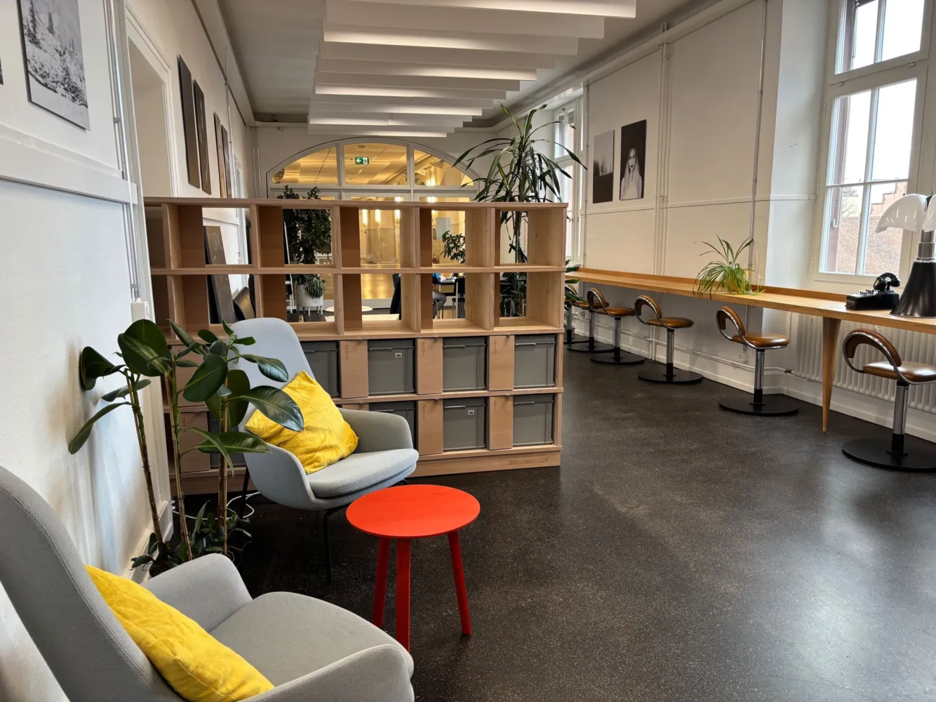 Der Coworking Space im kHaus erstreckt sich über zwei Stockwerke und bietet diverse Sitzungszimmer und Arbeitsräume mit wunderschönem Ausblick auf den Rhein. Die Räume sind grosszügig, hell und für deine ruhigen Videocalls stehen auf beiden Stockwerken Telefonboxen bereit.