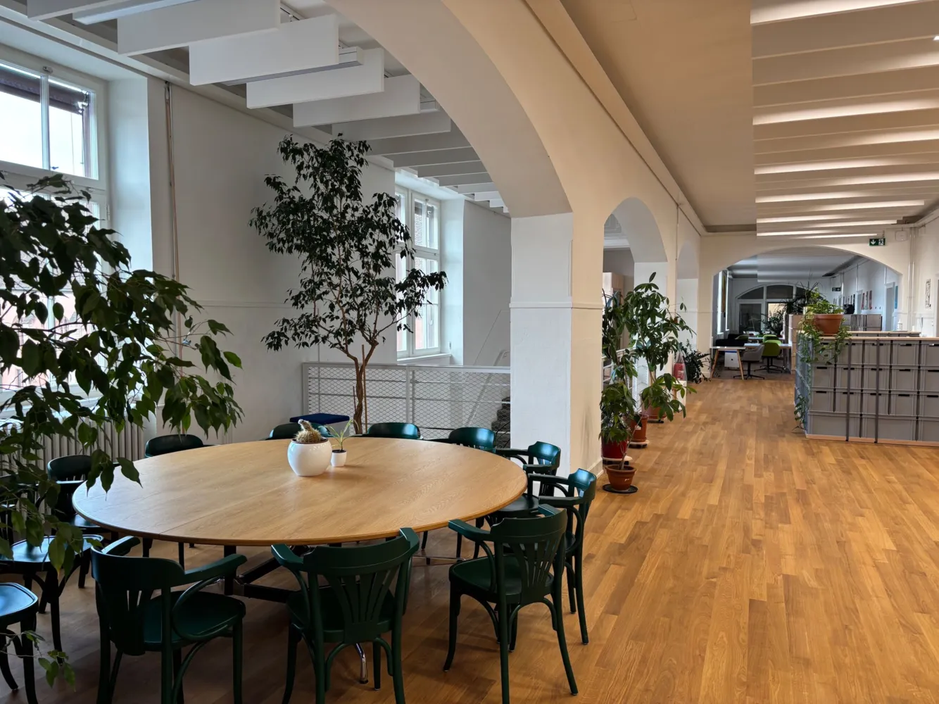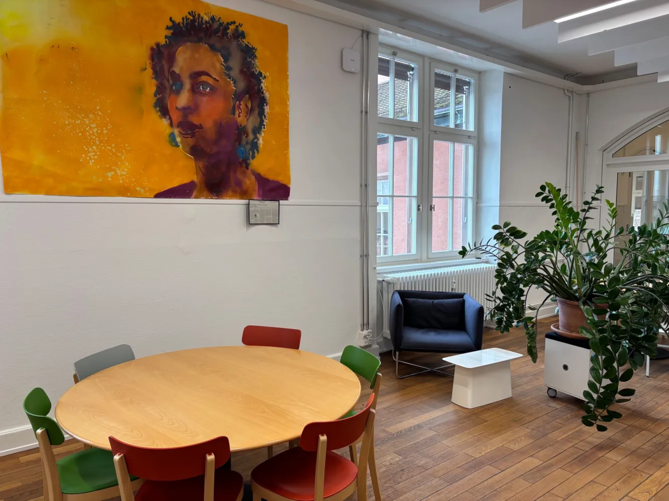 In der Gemeinschaftsküche findest du alles für eine entspannte Pause: Kaffee, Tee und einen grossen Tisch, der zum gemeinsamen Mittagessen oder zu angeregten Gesprächen einlädt. Die Rheinpromenade vor der Tür bietet zudem die perfekte Gelegenheit, um bei einem Spaziergang den Kopf zu lüften oder sich im Sommer eine Abkühlung zu gönnen.