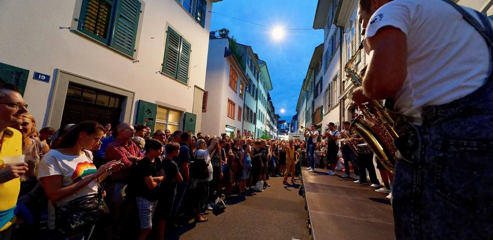 In kaum einer Gasse bleibt es ruhig am Freitagabend! An mehr als 30 Spielorten geben über 700 Musikerinnen und Musiker ihr Bestes, um dich zum Tanzen oder zumindest zum Mitwippen zu bewegen. Alle paar Meter erlebst du eine weitere musikalische Überraschung: eine Streetband, die aus dem Nichts auftaucht und zwischen den Passanten die Trompete und das Saxophon auspackt, ein Chor, dessen wunderschöner Gesang du schon von weitem durch die engen Gassen hallen hörst, oder ein Schlagzeuger, der auf einer der 25 Open-Air-Bühnen ausflippt und dich mit einer genialen Soloeinlage mitreisst!