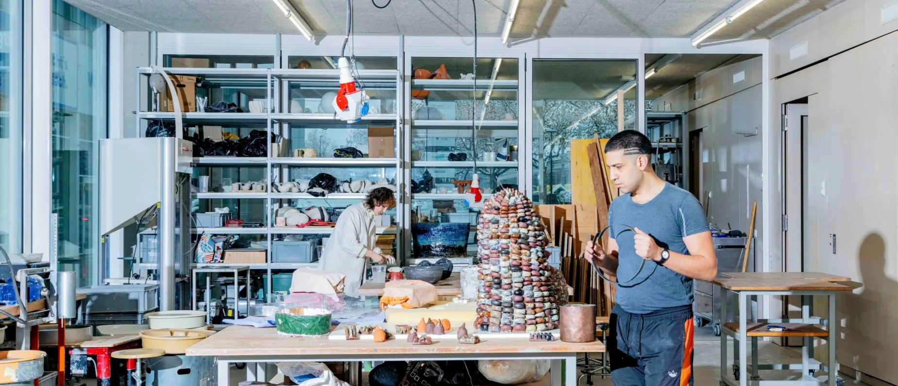 Das Studium in Bildender Kunst fördert die Entwicklung einer individuellen künstlerischen Haltung. Studierende lernen in der Atelierarbeit, in Workshops, Projekten und für Ausstellungen, ihre eigene künstlerische Sprache zu erarbeiten.