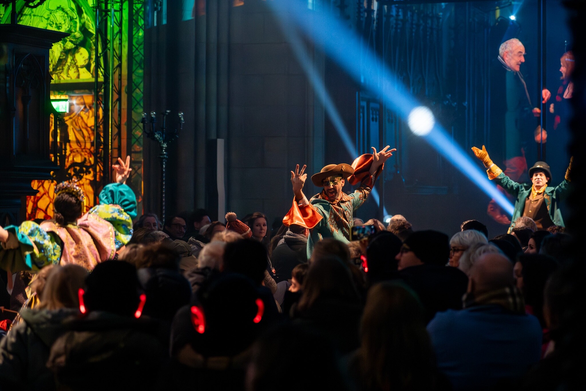 Die vergessene Legende von Basel ist eine gross angelegte immersive Ton- und Lichtshow mit Projektionen, Hologrammen, Live-Darsteller*innen, Luftakrobatik und Erzählungen.