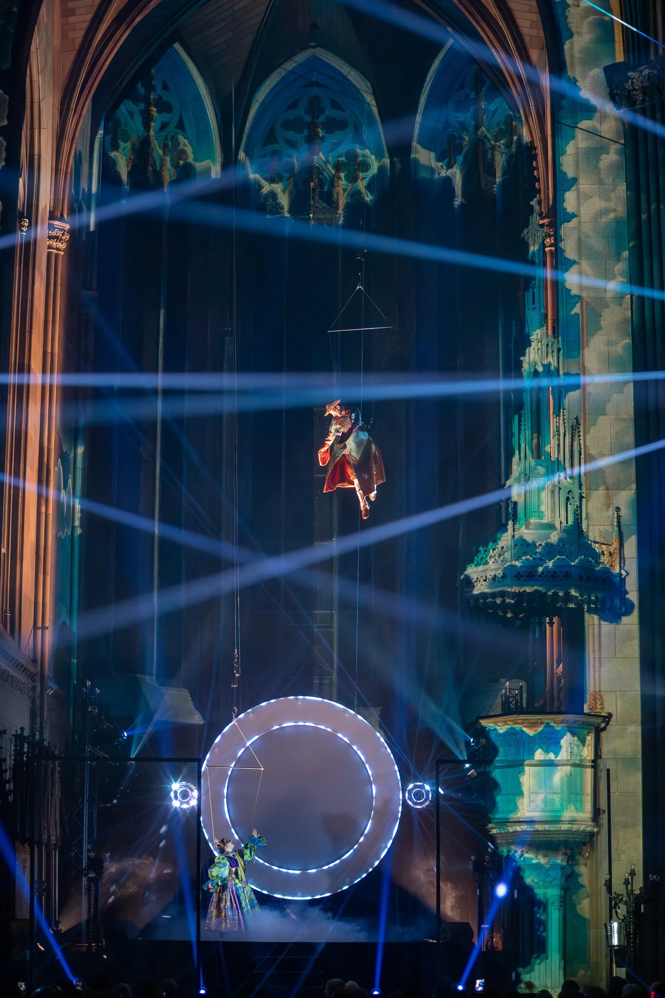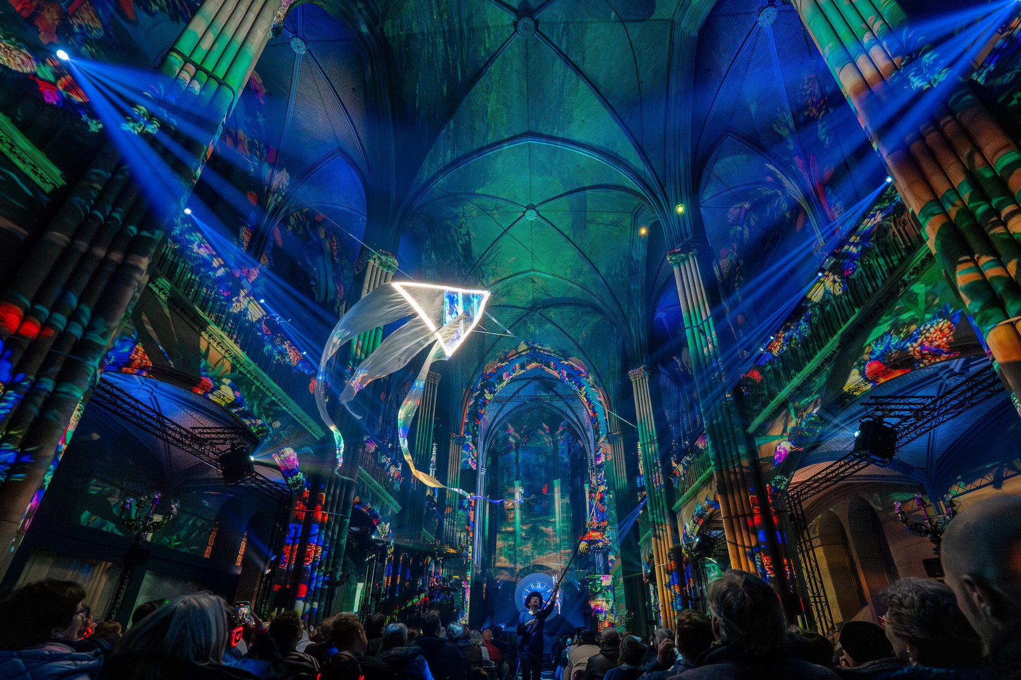 Der Kopf hinter der weltweit populären Show heisst Damien Fontaine. Der Regisseur aus Frankreich ist bekannt für Multimedia-Shows, welche visuelle Technologien mit lebendiger Kunst zu historischen Themen und lokalen Legenden verschmelzen lassen. Ein Konzept, welches bereits Millionen von Zuschauerinnen und Zuschauer auf der ganzen Welt angelockt hat. Für «Die vergessene Legende von Basel» arbeitet er mit den schwebenden Artisten der Compagnie «Les Passagers» zusammen, lässt die leuchtenden Drachen der Compagnie «Ventil’oh» unter den Gewölben der Elisabethenkirche steigen und präsentiert die fantasievollen und schwindelerregenden Stelzenläufer. Hinzu kommt das opulente Kostümdesign der international gefragten Elsässer Kostümbildnerin Marie-Jo Gébel, sowie die meisterhafte Umsetzung der Technik-Genies von TSE, welche darauf spezialisiert sind, symbolträchtige Orte wie Kirchen oder Art-déco-Schwimmbäder mit Licht und Ton zu einzigartigen Erlebnisräumen zu verwandeln. Diese talentierte Crew erweckt die Mythen und Legenden der Stadtgeschichte zum Leben.