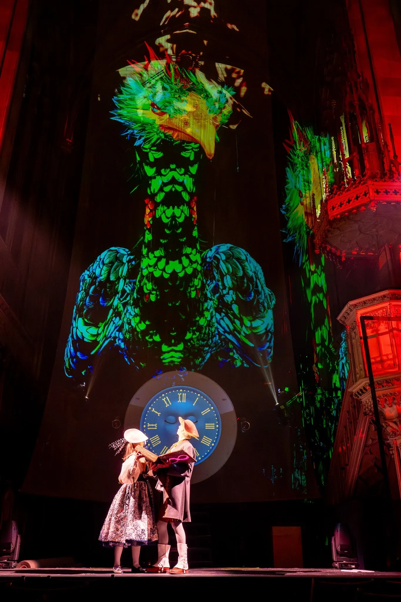 In der Show dreht ein geheimnisvoller Zeitenregler die Uhrzeiger zurück, wodurch das Publikum in die Jahre 1816 («Das Jahr ohne Sommer») und 1823 (Basler Fasnacht erwacht zu neuem Leben) katapultiert wird. Hier begegnen wir den Figuren Margaretha und Christoph, sowie dem mythischen Basilisken. Mithilfe künstlerischer und technischer Mittel wird diese Basler Geschichte, Legende und Mythologie als atemberaubendes, familientaugliches Spektakel inszeniert. Lufttänzerinnen und Lufttänzer, Darstellerinnen und Darsteller, welche sich auf hohen Stelzen bewegen, präzise auf die Architektur der Elisabethenkirche abgestimmte Lichteffekte, Laser-Videoprojektoren, Hologramme und weitere Spezialeffekte bringen dich zum Staunen – so wie du es dir sonst nur aus einem Fantasyfilm aus Hollywood gewohnt bist.