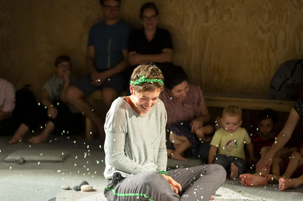 Inhaltlich und musikalisch ist hier alles auf die kleinsten Besucherinnen und Besucher abgestimmt. Der Raum, die Farben und Formen, die Lautstärke, die Bewegungen, die Stimmen, die Geräusche, die Requisiten, der Gesang. Hier kannst du ungeniert deine Brüste auspacken oder deinen Rabauken durch das Bühnenbild zwischen den Beinen der Sängerinnen und Sänger hindurch rennen lassen. Es gibt keine Grenzen.