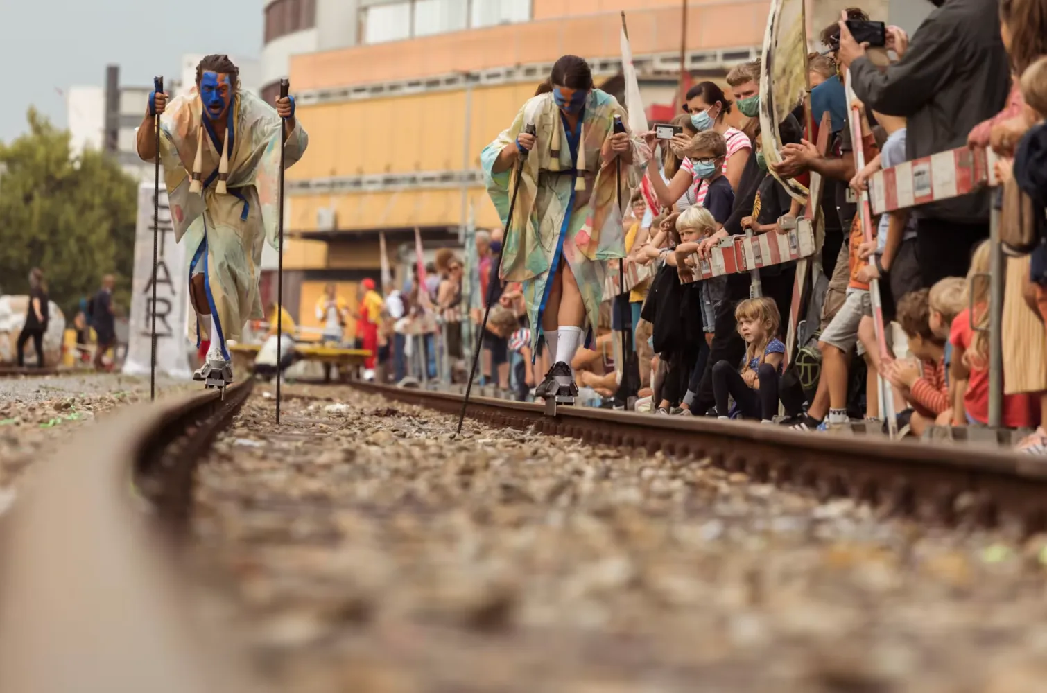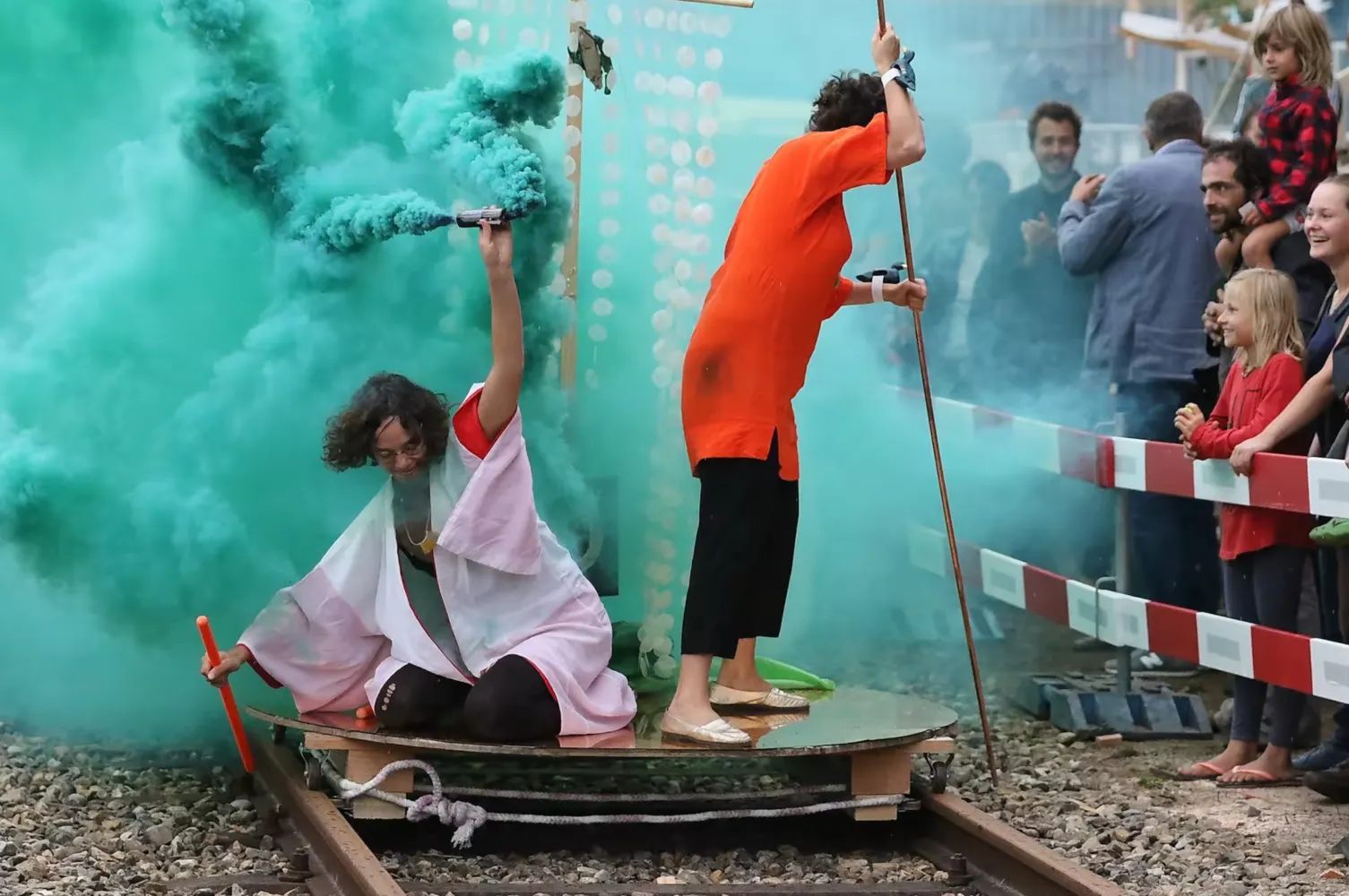 Kunstintervention? Familienevent? Sportwettkampf? Trash-Spektakel? Von allem ein wenig! Das alljährliche Draisine Derby am Gleisbogen Dreispitz versteht sich als Freiraum in der Leistungsgesellschaft. Seit 2016 wetteifern die Teilnehmenden mit sehr viel Körpereinsatz, Kreativität, Einfallsreichtum, Lust am Chaos und Mut zum Scheitern mit selbstgebauten Gleisgefährten um den Sieg im Rennen und um die Gunst von Publikum und Jury.