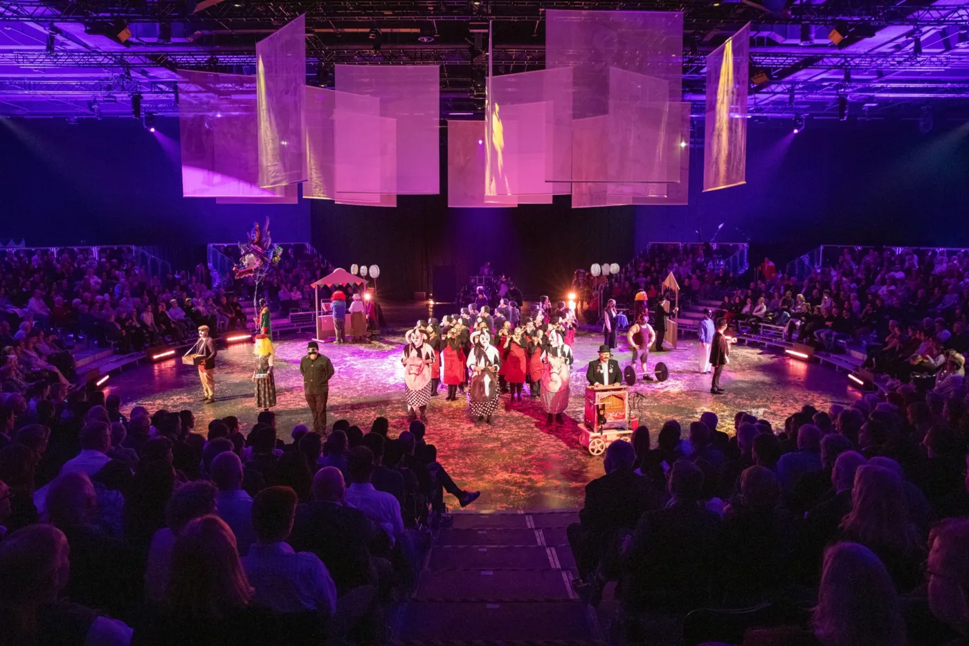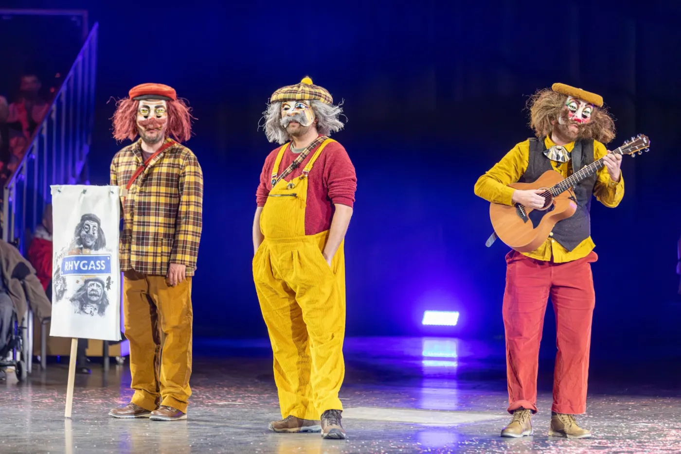 Die Stammcliquen, Schnitzelbängg sowie das Ensemble schafften es vergangenes Jahr, das Publikum nicht nur frontal anzusprechen, sondern die Möglichkeiten der 360-Grad Bühne zu ihrem Vorteil zu nutzen. Die musikalischen, humoristischen und melancholischen Darbietungen waren rundherum spürbar, die Inszenierungen – gezwungenermassen – noch kreativer und die Dynamik zwischen den Aktiven und dem Publikum deutlich stärker. Michael Luisier baut auch dieses Jahr auf dieses Erfolgsrezept. Die Schnitzelbängg Dreydaagsfliege, Heiri, Schunggebegräbnis, Spitzbueb und Spootschicht Rhygass (jeweils zwei Bängg pro Abend) tragen ihren Teil dazu bei und das Ensemble wird erneut beweisen, wie viel schauspielerisches und musikalisches Talent in ihm steckt.