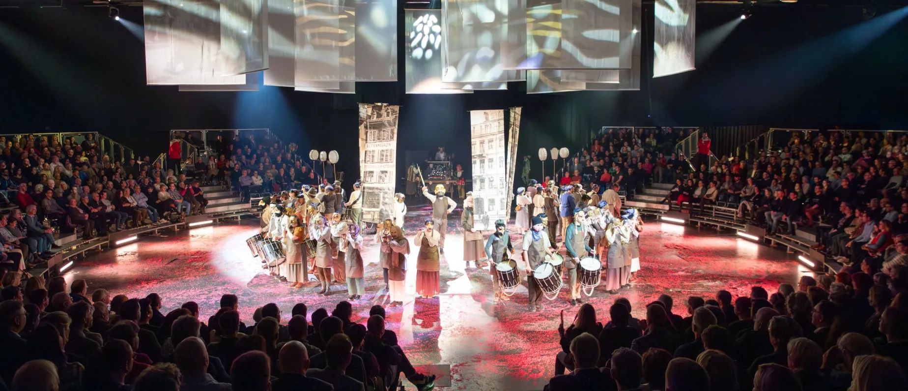 Dass sich das Drummeli immer wieder neu erfindet, gehört bereits seit der Erstausgabe 1906 zur DNA der heute grössten aller Vorfasnachtsveranstaltungen dazu. Als das Drummeli am 26. Februar 1906 im heutigen Volkshaus seine Premiere feierte, lud das Fasnachts-Comité noch zu einem blossen Trommelkonzert – Pfeifer waren kaum zu hören und von den allseits beliebten Rahmestiggli fehlte noch jede Spur. In den darauffolgenden 120 Jahren entwickelte sich das Drummeli weiter – immer mit dem Ziel, das Publikum so nah und authentisch an die stets grösser werdende Fasnachtsszene heranzuführen. Die letzte Neuerung vom Drummeli – die 360-Grad Arena-Bühne – liegt nun ein Jahr zurück und ist 2025 beim Publikum sehr gut angekommen. Auf diese Weise rückt das Drummeli noch näher an die Besuchenden, wodurch eine Dynamik erzeugt wird, die man sonst nur von der Fasnacht kennt. Auch dieses Jahr kannst du diese Energie, wenn hunderte Fasnächtler gemeinsam die Arena bespielen, wieder in der Arena-Bühne erleben!