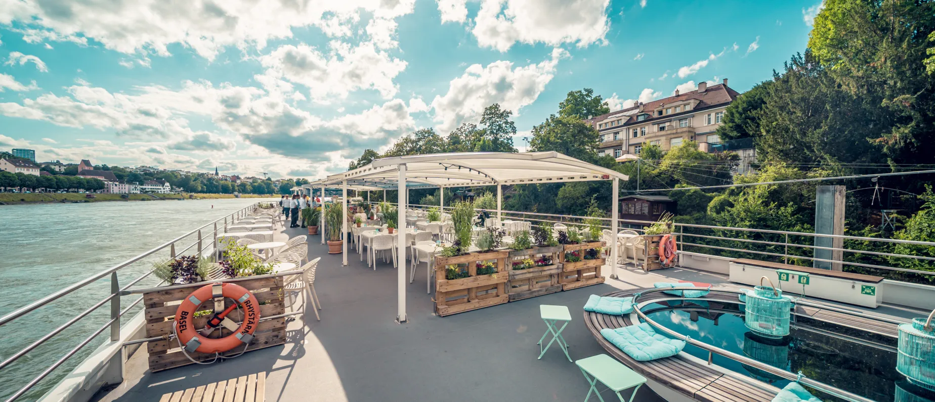 Entspannt dem Sonnenuntergang entgegenschippern, erfrischende Cocktails schlürfen, Apéroplättli teilen und ein feines z'Nacht geniessen – ein Basler Sommer ganz nach deinem Gusto!