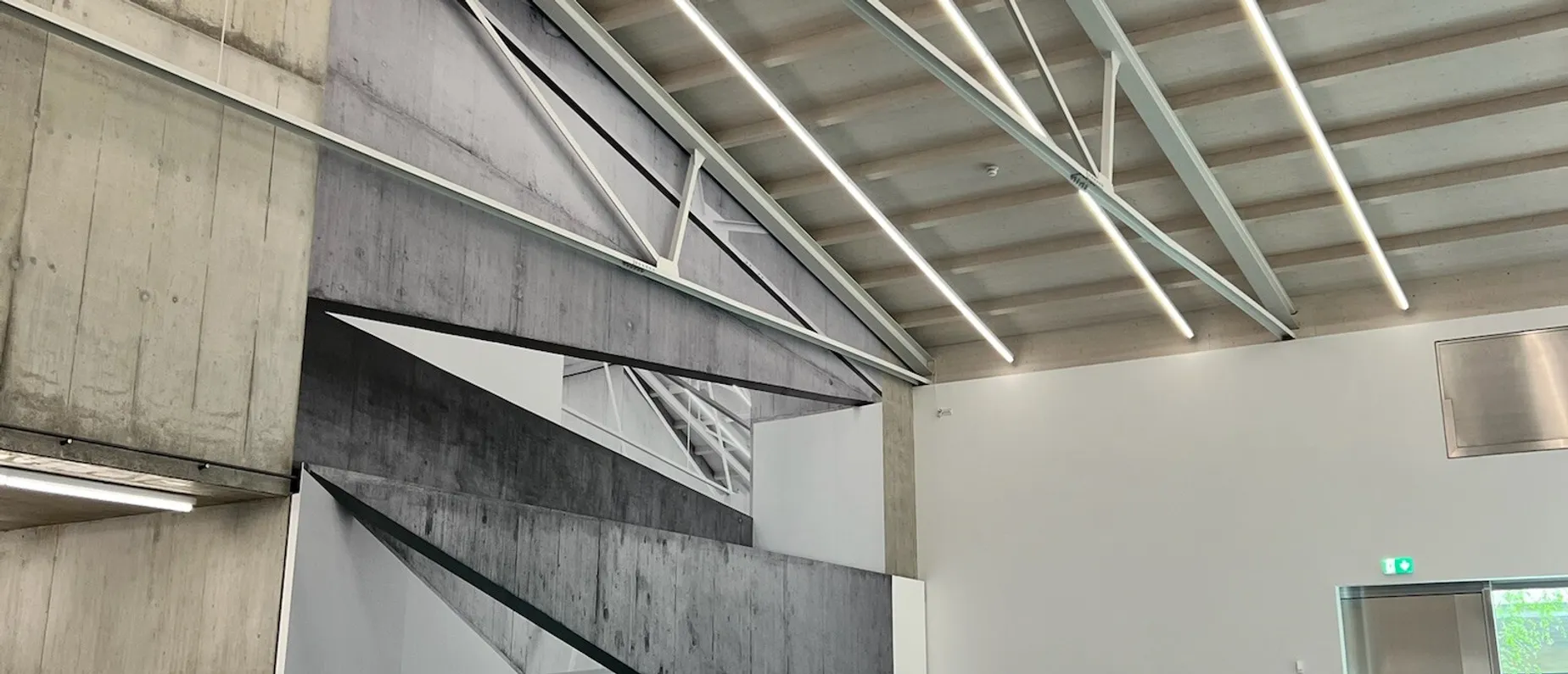 Läck, ist das schön geworden, das neue Kunsthaus Baselland! Mitten auf dem kreativ pulsierenden Dreispitzareal – zwischen HeK, Atelier Mondial, Wohn- und Gewerbebauten und der Lastwagen-befahrenen Helsinki-Strasse hat das Architekturbüro Buchner Bründler die einstige Lagerhalle für Champagner in ein Mekka für zeitgenössische Kunst umfunktioniert. Der Boden ist noch original und erzählt von herumgekarrten Paletten und zerschellten Schämpis-Flaschen. Ansonsten: Alles offen, alles hell, hohe Räume, einladend, spannende Ein- und Ausblicke – an manchen Stellen hat man Sicht in drei Ausstellungsräume gleichzeitig und obendrein sieht man noch den Himmel.