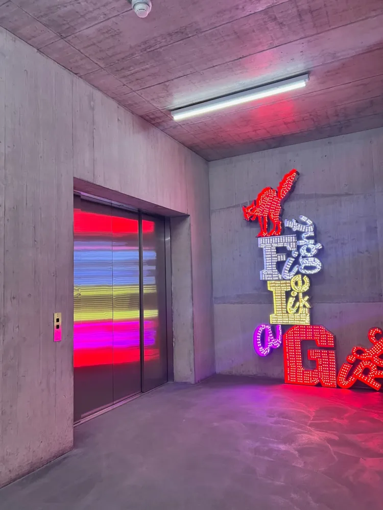 Eine kleine Oase ist dieser Ort. Kein Wunder, scheinen sich alle Beteiligten nach langen Jahren der Planung, nach zwei Jahren Bauzeit und Monaten des Umzugs über die Eröffnung wie verrückt zu freuen. Ines Goldbach schwebte am offiziellen Medienanlass sichtlich glücklich durch die Räume, beflügelt von der wunderbaren Architektur, die sich mit der Eröffnungs-Ausstellung «Rewilding» in einer Selbstverständlichkeit vereint, als wäre hier nie etwas anderes gewesen als bunte, witzige, überraschende und zum Nachdenken anregende Kunst in klug umfunktionierter alter Bausubstanz.