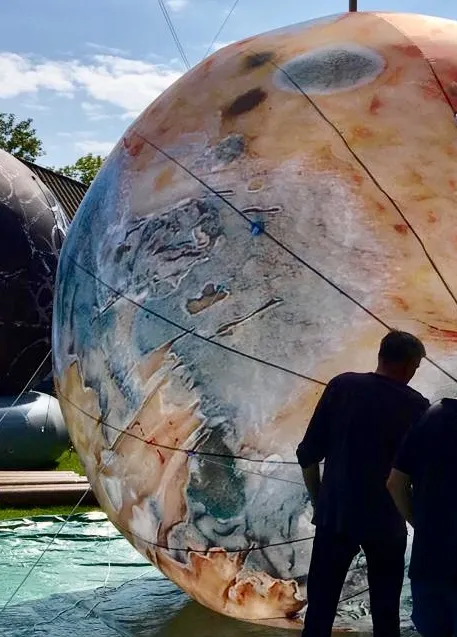 Basel wird zum Kunstplaneten-Park: Zwölf Kugeln mit je einem Durchmesser von vier Metern bereichern die Urbanität um ein temporäres, künstliches und künstlerisches Universum. Basel erhält quasi einen eigenen Kosmos und wird in einen sichtbaren universellen Zusammenhang eingefügt. Ein Wechselspiel zwischen Stadt, Natur, Kunst, Universum, Urbanität und Unendlichkeit!