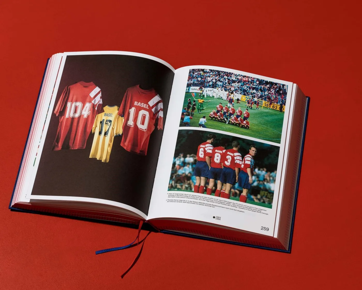 Das neu veröffentlichte Buch «Stoffgeschichten» von FCB-Trikotsammler Lorenz Schumacher erzählt die Textilgeschichte des FC Basel 1893 und gibt dir auf 640 Seiten einen vertieften Einblick in die rotblaue Trikotwelt. Der über zwei Kilogramm schwere Hardcover-Leinenband nimmt dich mit auf eine Zeitreise von der Gründung 1893 bis heute und zeigt über 160 abgebildeten Originalleibchen mit Erläuterungen zu den Farben, zum Design, zu Nummern und Schriften, zur Entwicklung des Trikotsponsorings, zur Zusammenarbeit mit den verschiedenen Ausrüstern und vieles mehr.