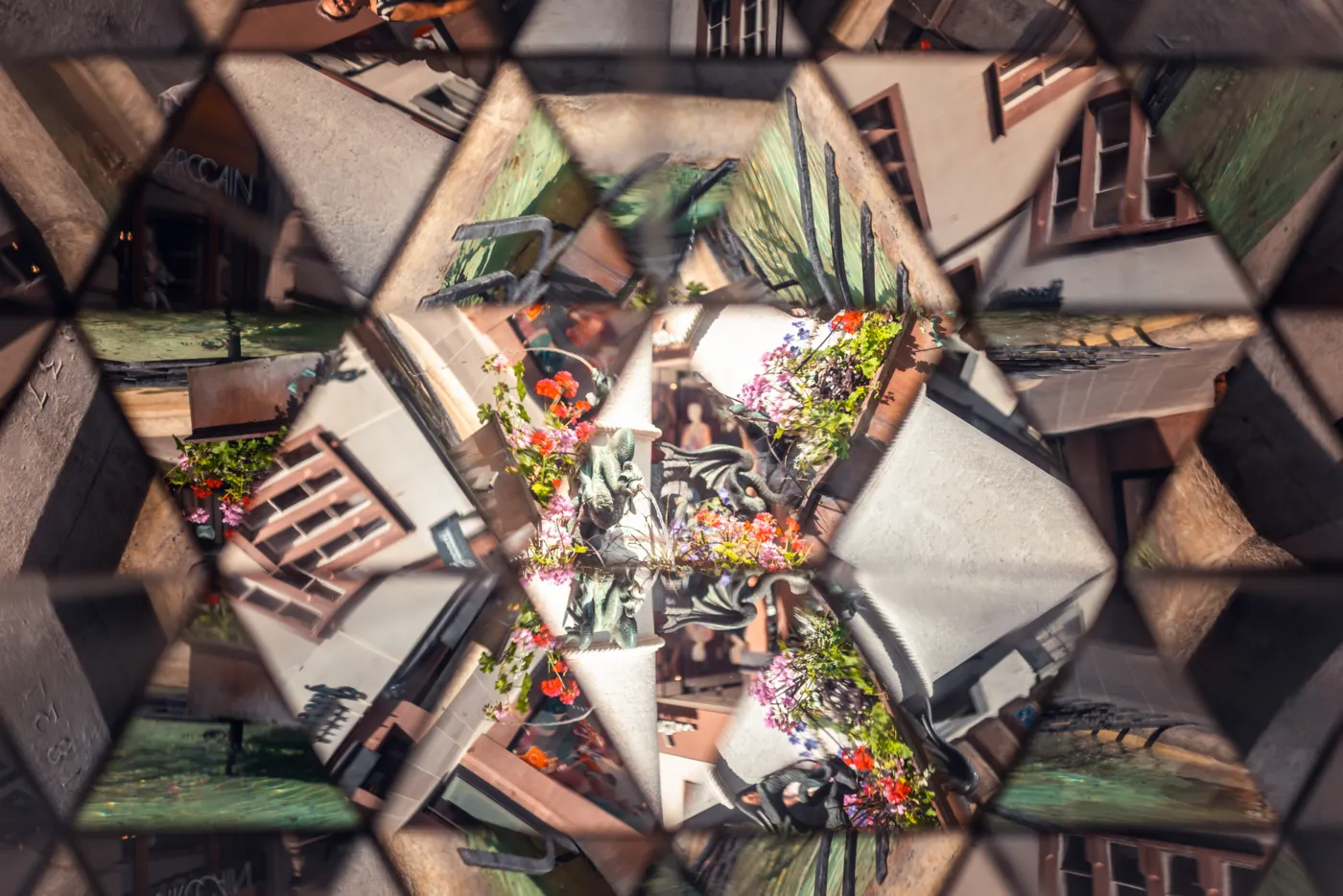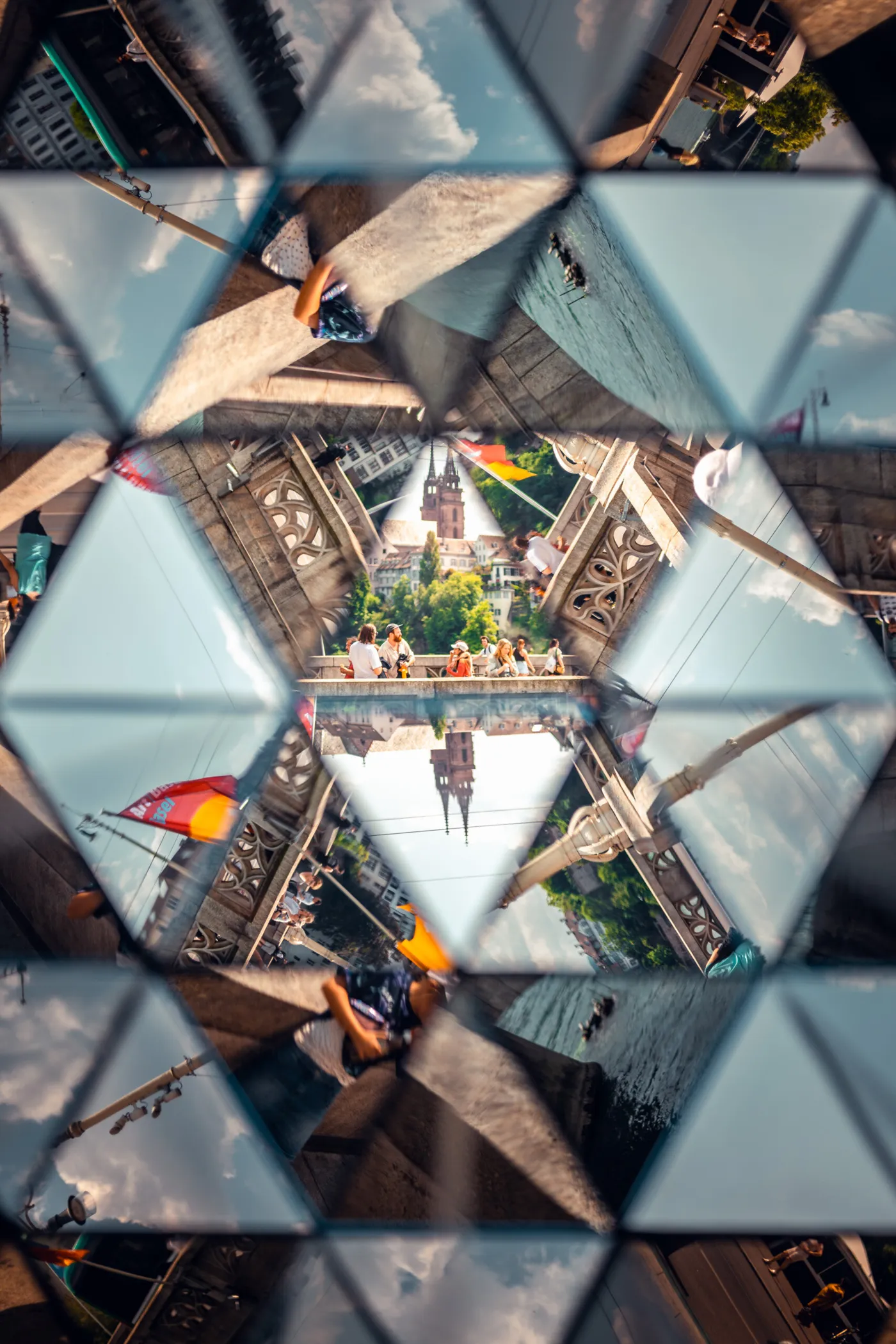 Wundersame geometrische Muster tun sich dir auf beim Blick durch jedes der 14 «Stadt Bligg»-Kaleidoskope, die dir an zentralen Orten der Innenstadt zur Verfügung stehen. Zu zweit empfiehlt sich ein Blick von je einer Seite durch das Kaleidoskop – man kann die endlose Spiegelung und Zerstückelung der Gesichter sogar fotografieren.
