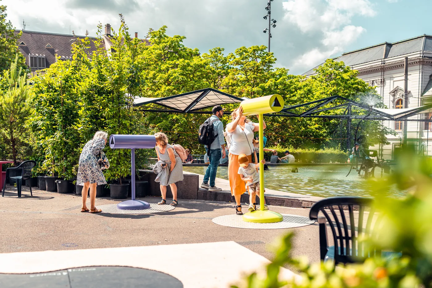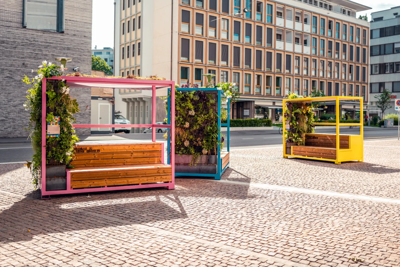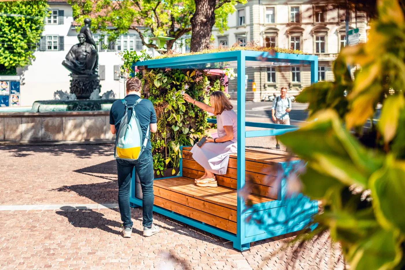 Bis im Oktober stehen an drei Orten in der Stadt begrünte, Schatten spendende Stadt-Inseln. Hier kannst du dich hinsetzen, innehalten, durchatmen – und dank Solarstrom dein Smartphone aufladen. Die Begrünung der «Stadt Inseln» wird durch ein autarkes Bewässerungssystem unterhalten. Es sind kleine Wohnzimmer im öffentlichen Raum.