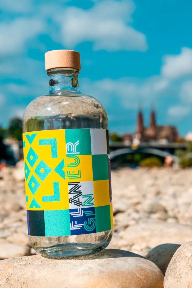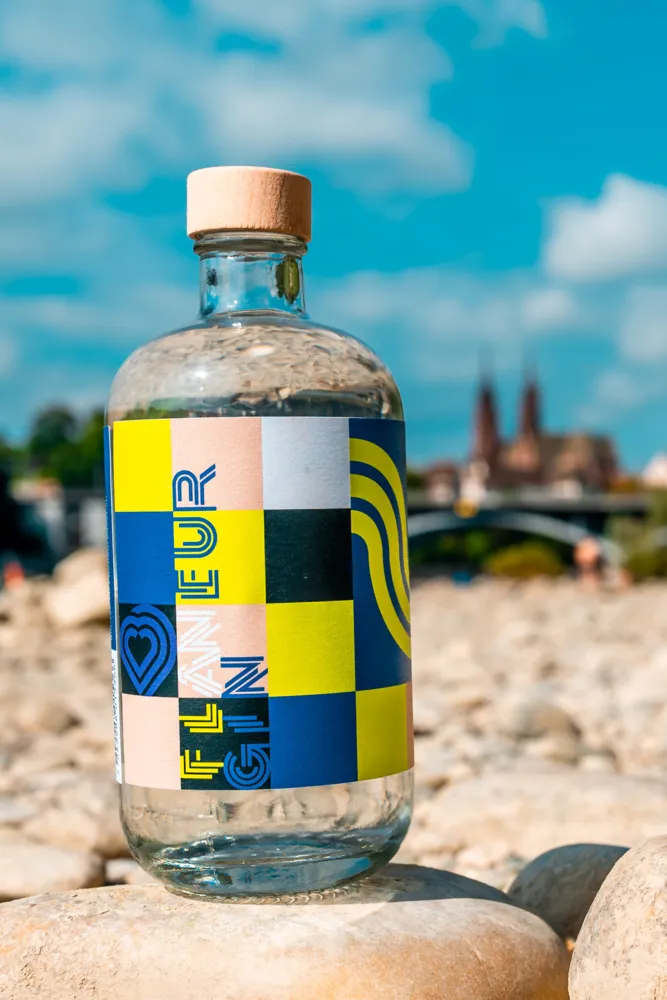 Pünktlich zum Flâneur Festival 2024 entstand in Zusammenarbeit mit StadtKonzeptBasel – Organisator vom Flâneur Festival – der erste Flâneur Dry Gin. Die feinen Geschmacksnuancen von Wacholderbeeren, Orange, Grapefruit und Rosa Pfeffer bringen den bunten, frischen, verspielten und lebensfrohen Charakter des Festivals zum Ausdruck. Es versteht sich von selbst, dass der Gin für das Festival, welches das lokale Stadtangebot zelebriert, auch hier in unserer Stadt produziert, abgefüllt und etikettiert wurde. Nämlich in Jérémy's Gin Lab in der Basler Aktienmühle.