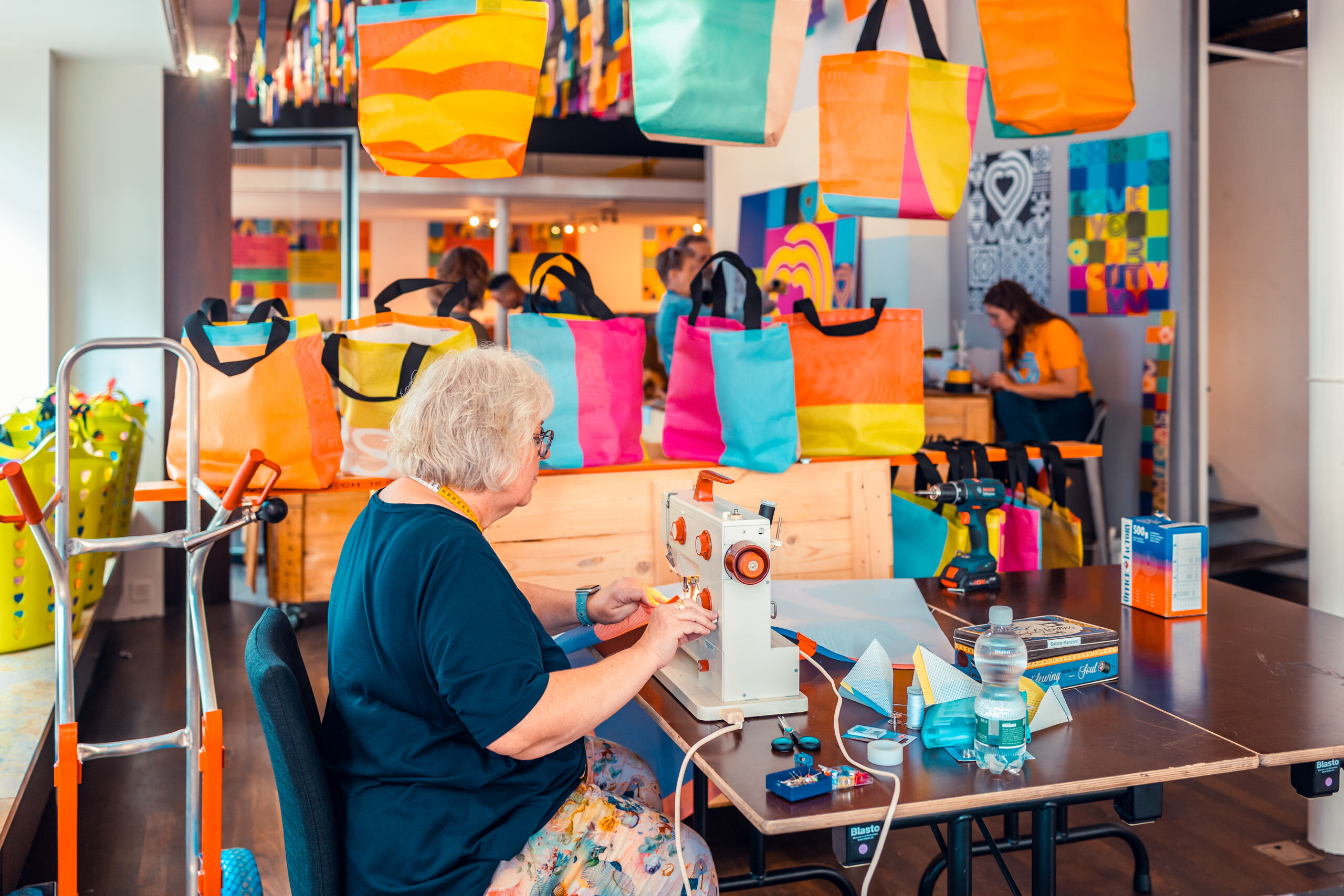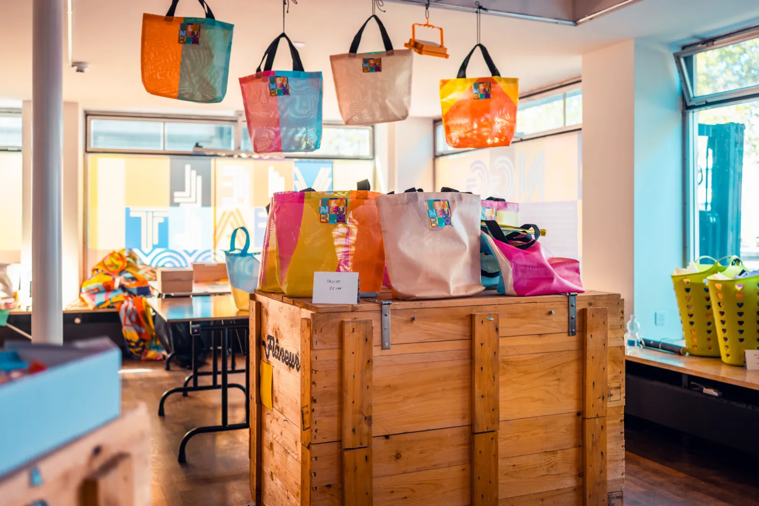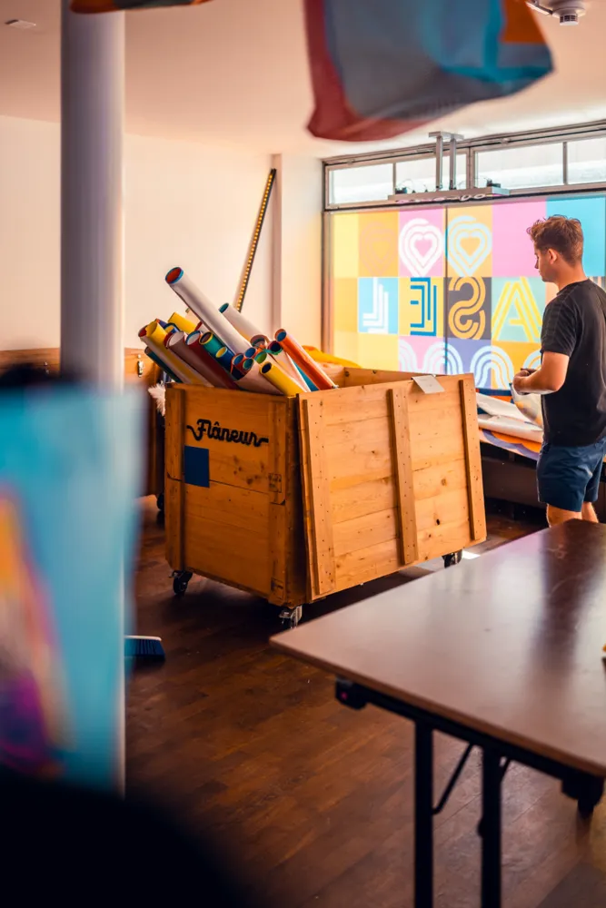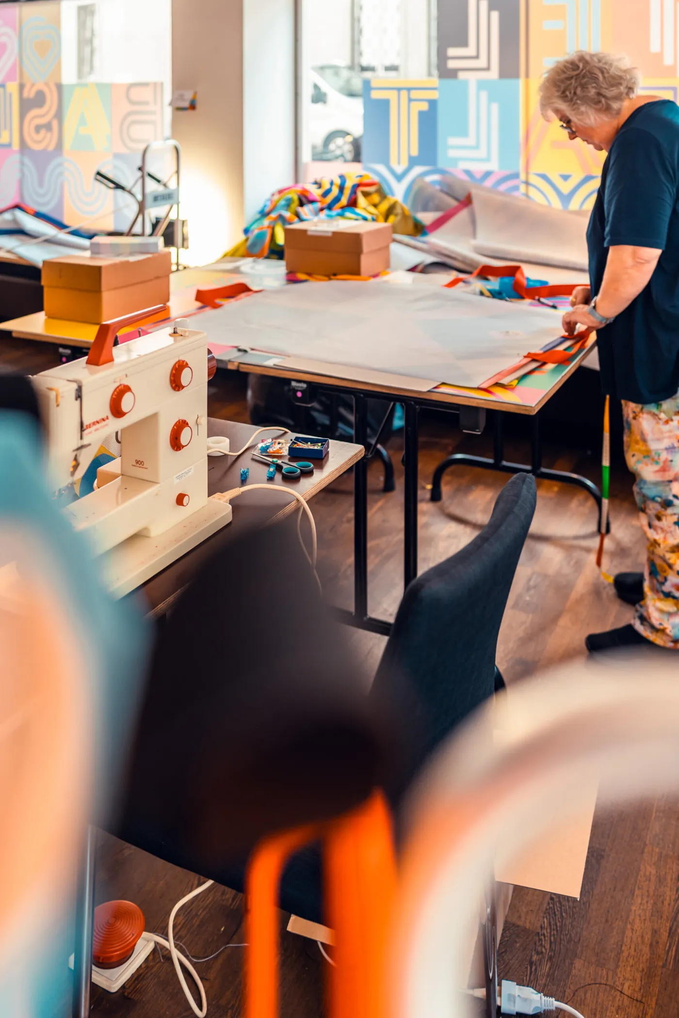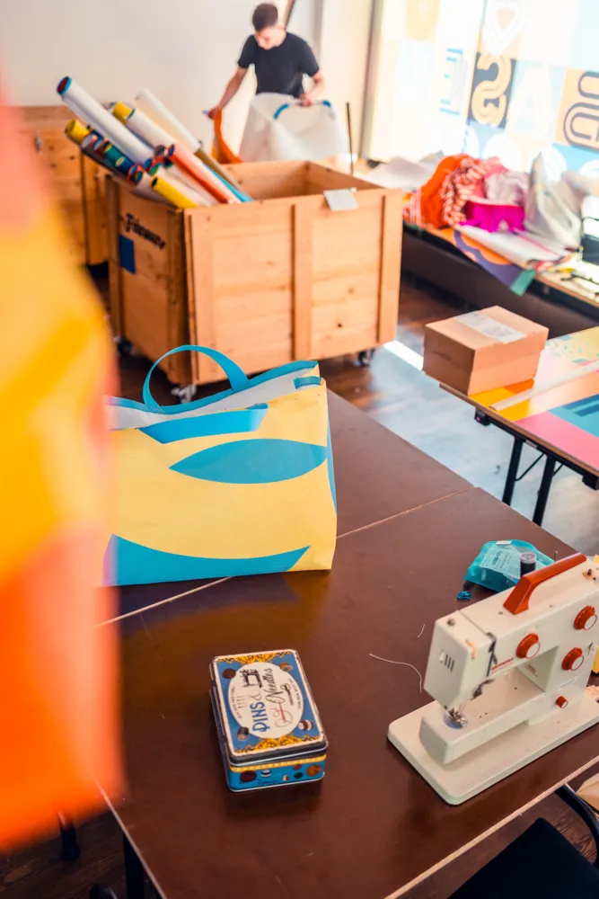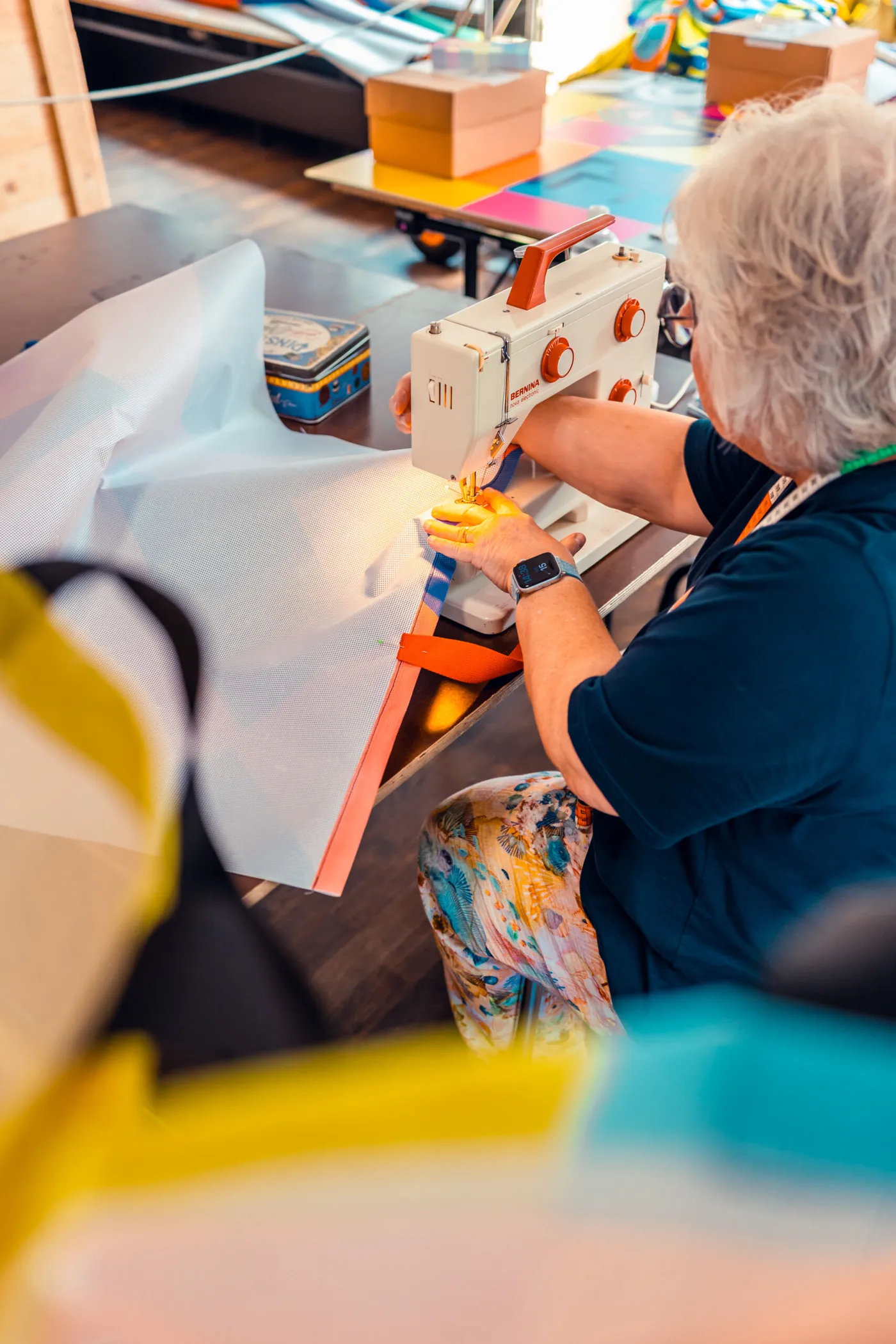 Vielleicht wird aus einer alten Fahne dein neues Umhängetuch. Oder aus einer Festivalblache eine Tasche. Und genau das geschieht live vor Ort: Eine Näherin upcycelt direkt im Pop-Up Store alte Materialien zu neuen Lieblingsstücken – von der Einkaufstasche bis zum Souvenirbeutel für deine Flâneur-Schätze.