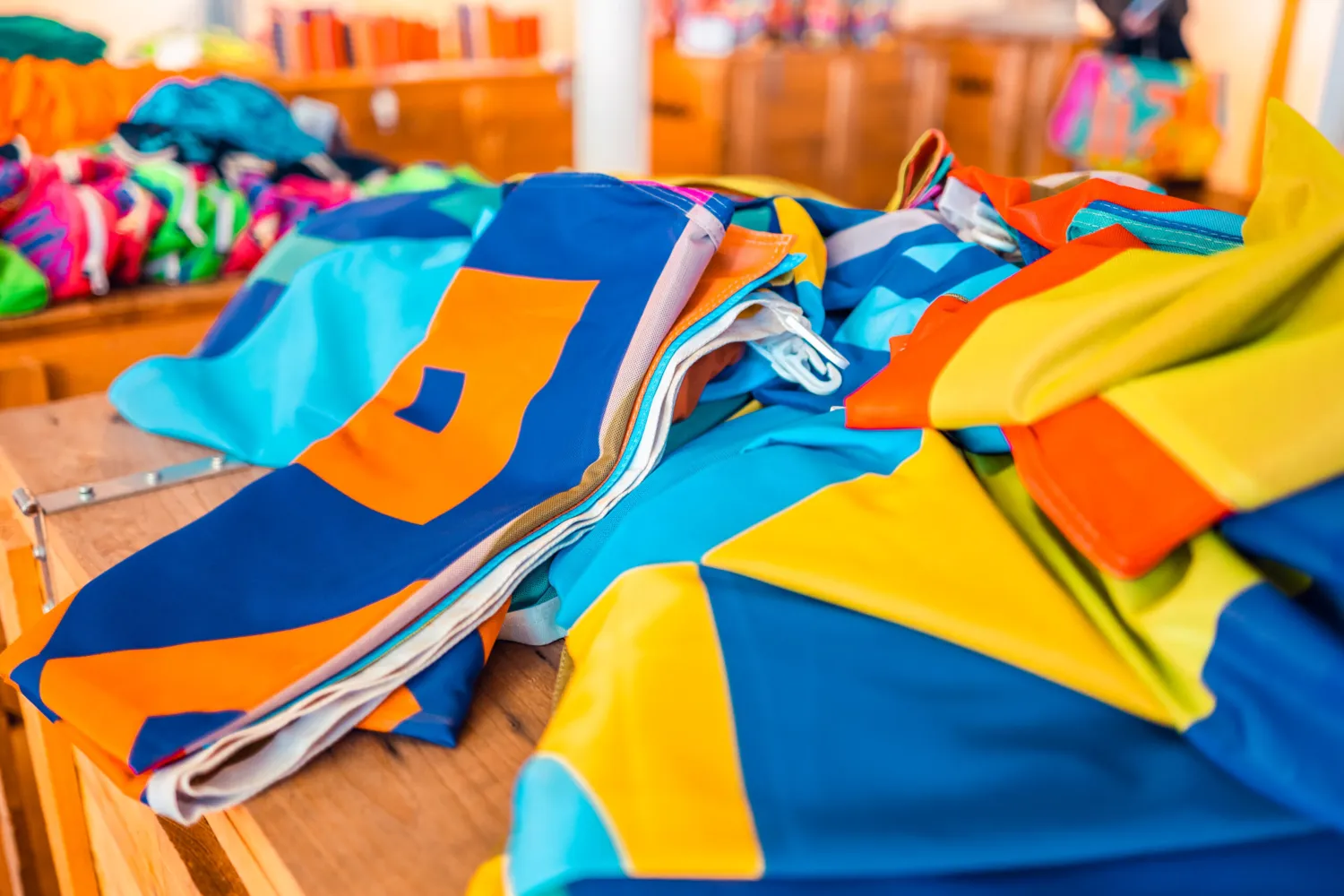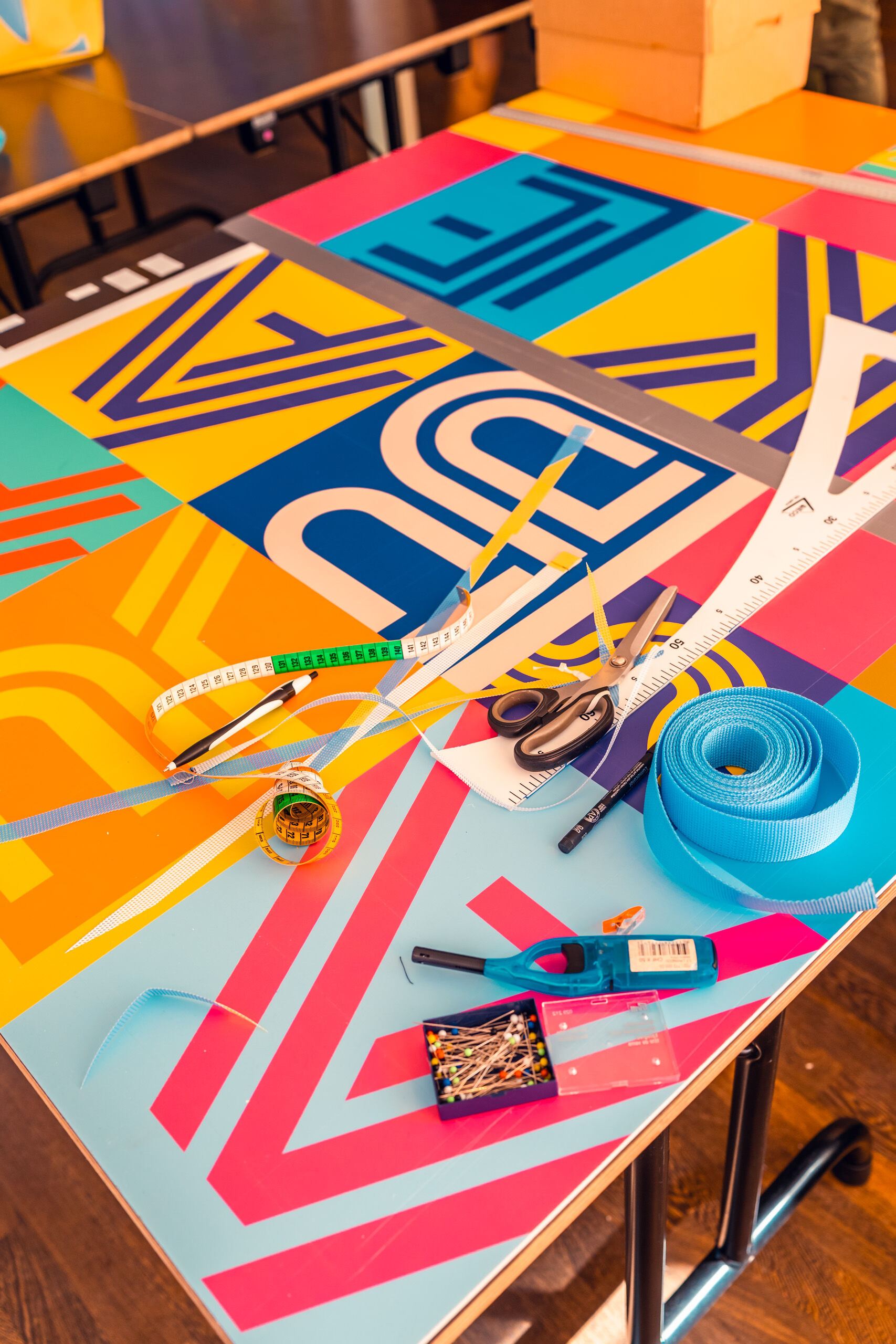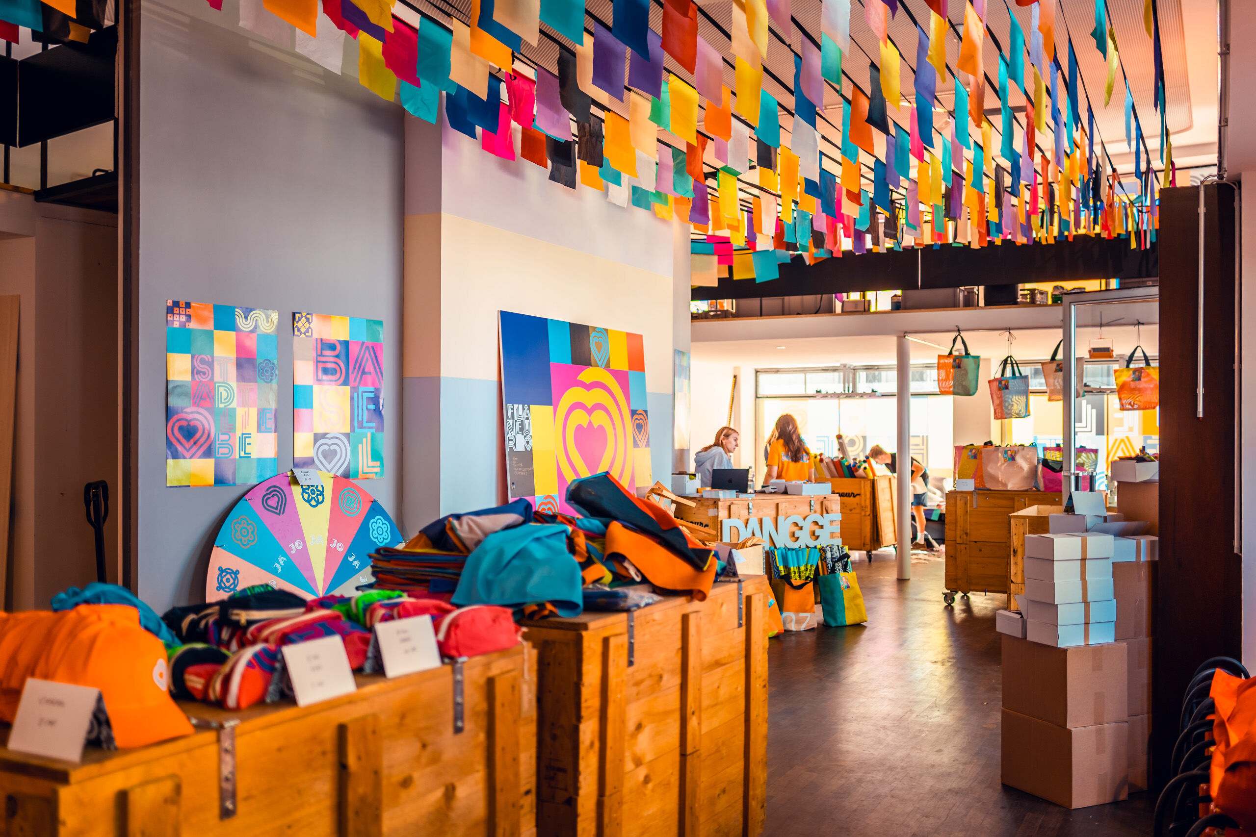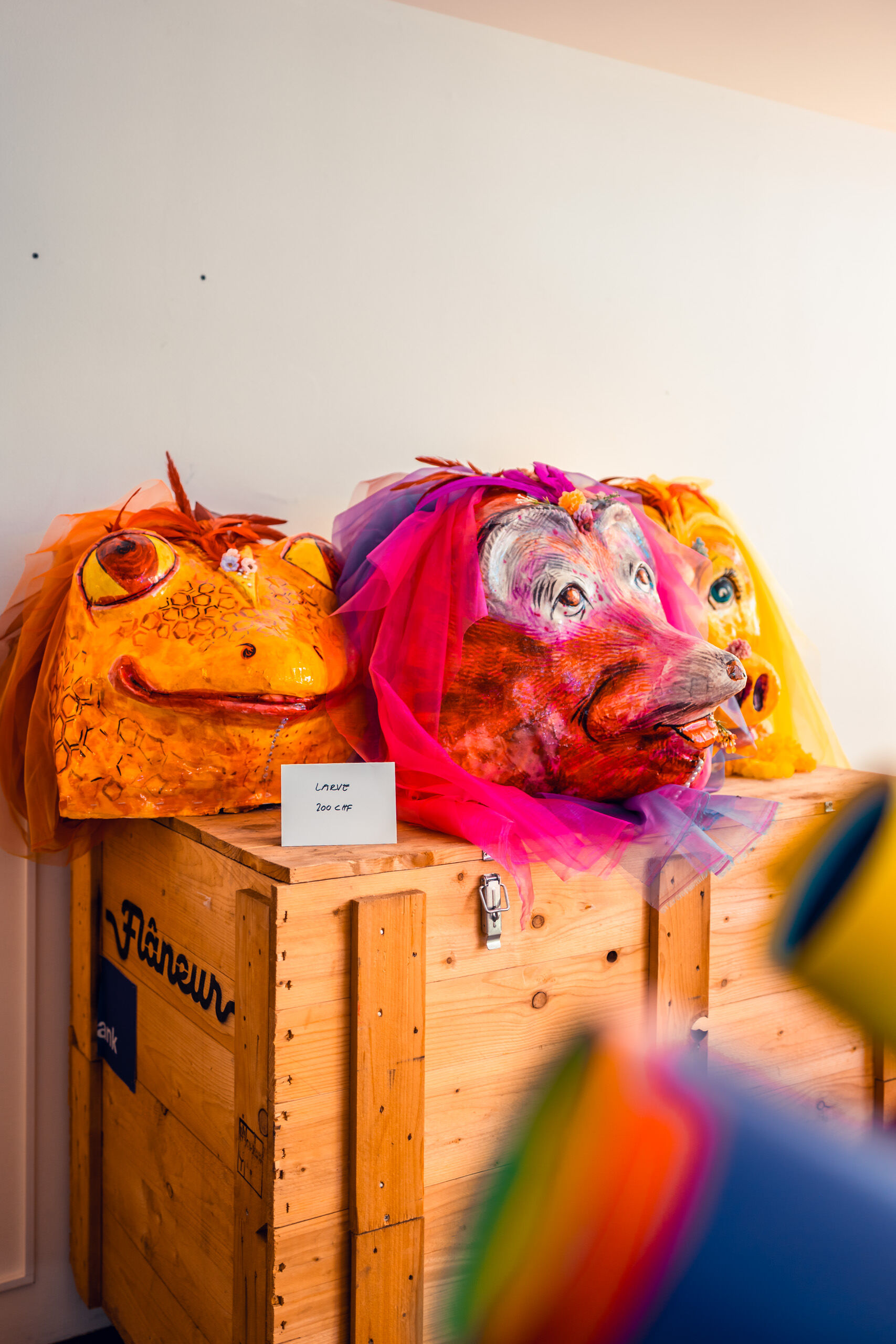 Zwischen bunten Fahnen, liebevoll gestaltetem Dekomaterial, Fundstücken aus den ErlebnisCornern und dem beliebten Kartenspiel «JäJo» wartet ein Stück Flâneur auf dich – zum Erinnern, Basteln, Upcyclen oder einfach zum Mitnehmen. Auch dabei: Shirts, Plakate, Puzzles, Blachenstücke, Spanngurte, Dachfolien und mehr.