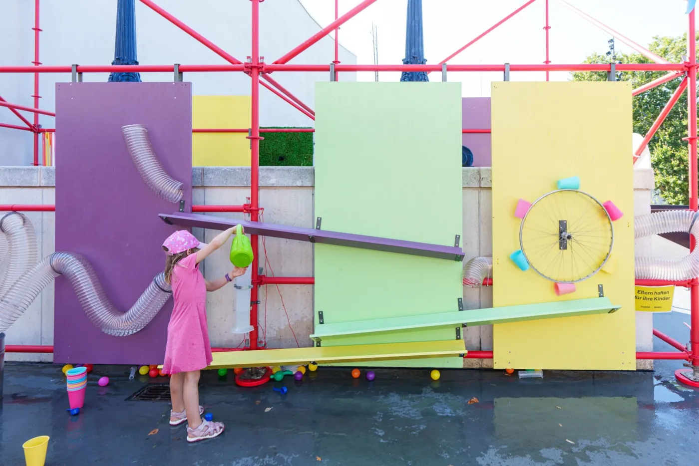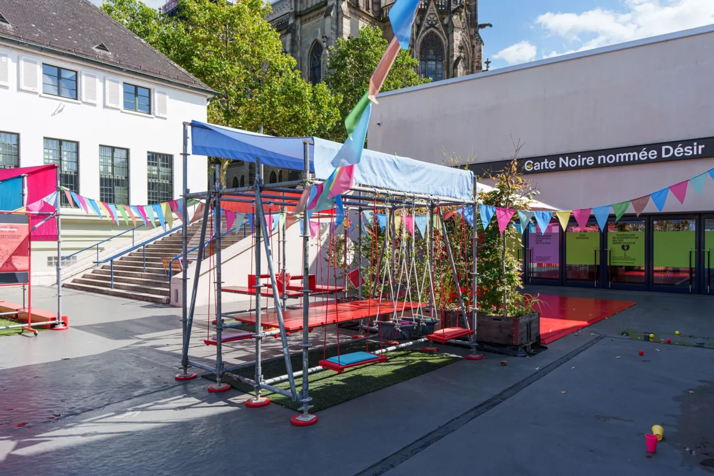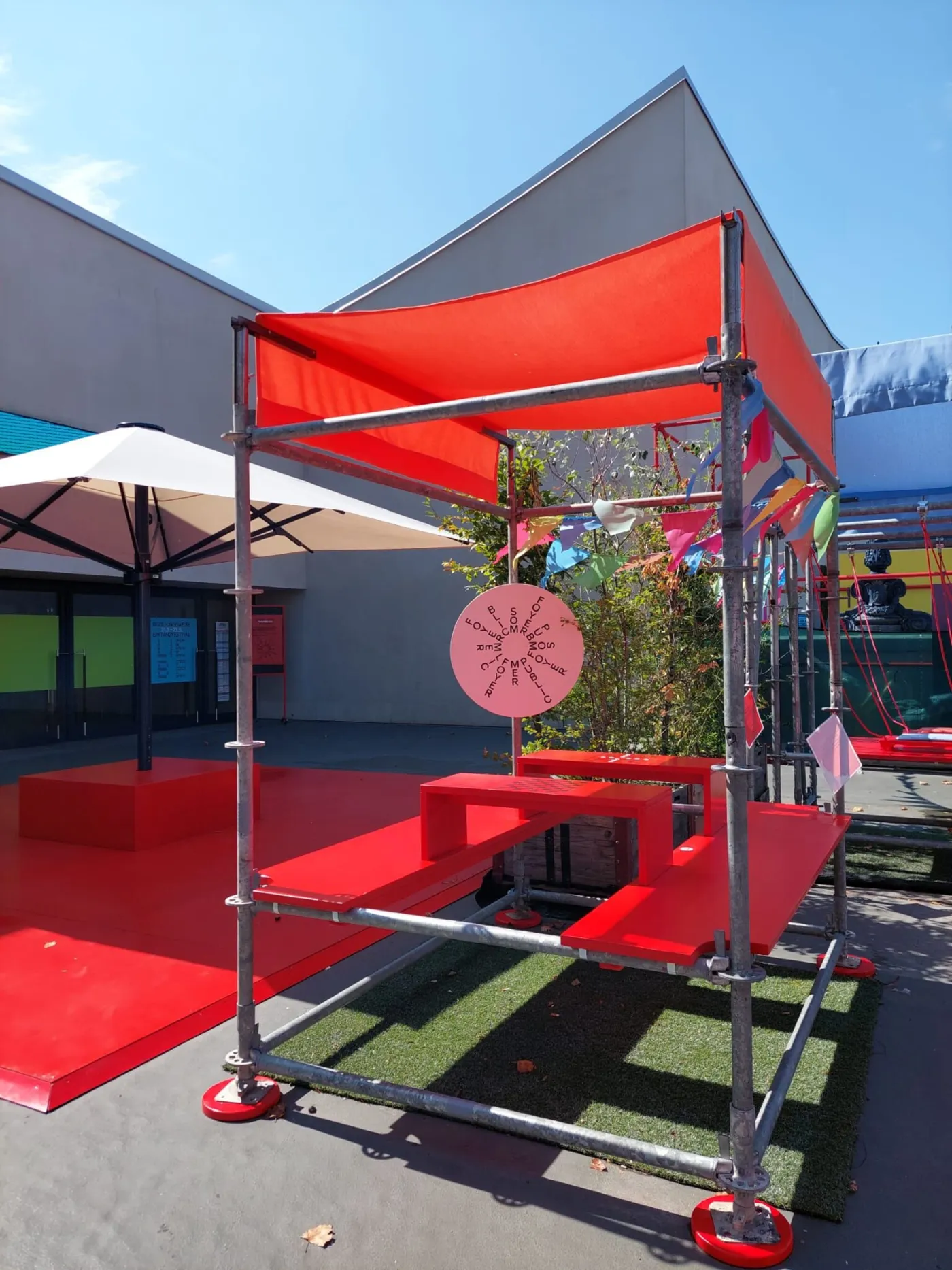 Mit bunten Pavillons und vielerlei Sitzgelegenheiten zeigt das Sommerfoyer, dass der geteilte Ort für Arbeit, Freizeit und alles zwischendrin auch Draussen wunderbar funktioniert. Für die fleissigen Bienchen unter uns gibt es Tische, die sich perfekt als open air Arbeitsplätze eignen, aber auch die Jungen (und Junggebliebenen) kommen bei Planschbecken und Boule Bahn auf ihre Kosten. Wenn es dann doch mal zu heiss wird, kannst du dir in der alten Billettkasse eine Glace oder etwas zu Trinken kaufen. Und dich dann in die Hängematte legen und die Seele baumeln lassen.