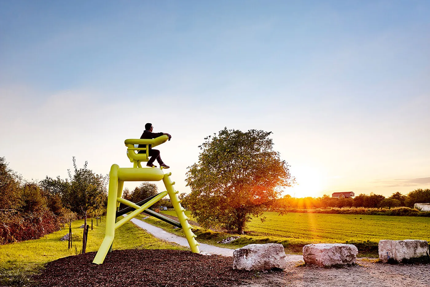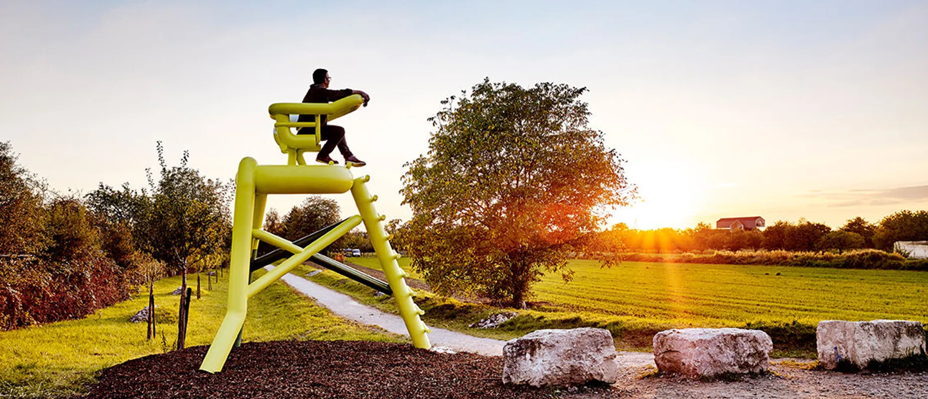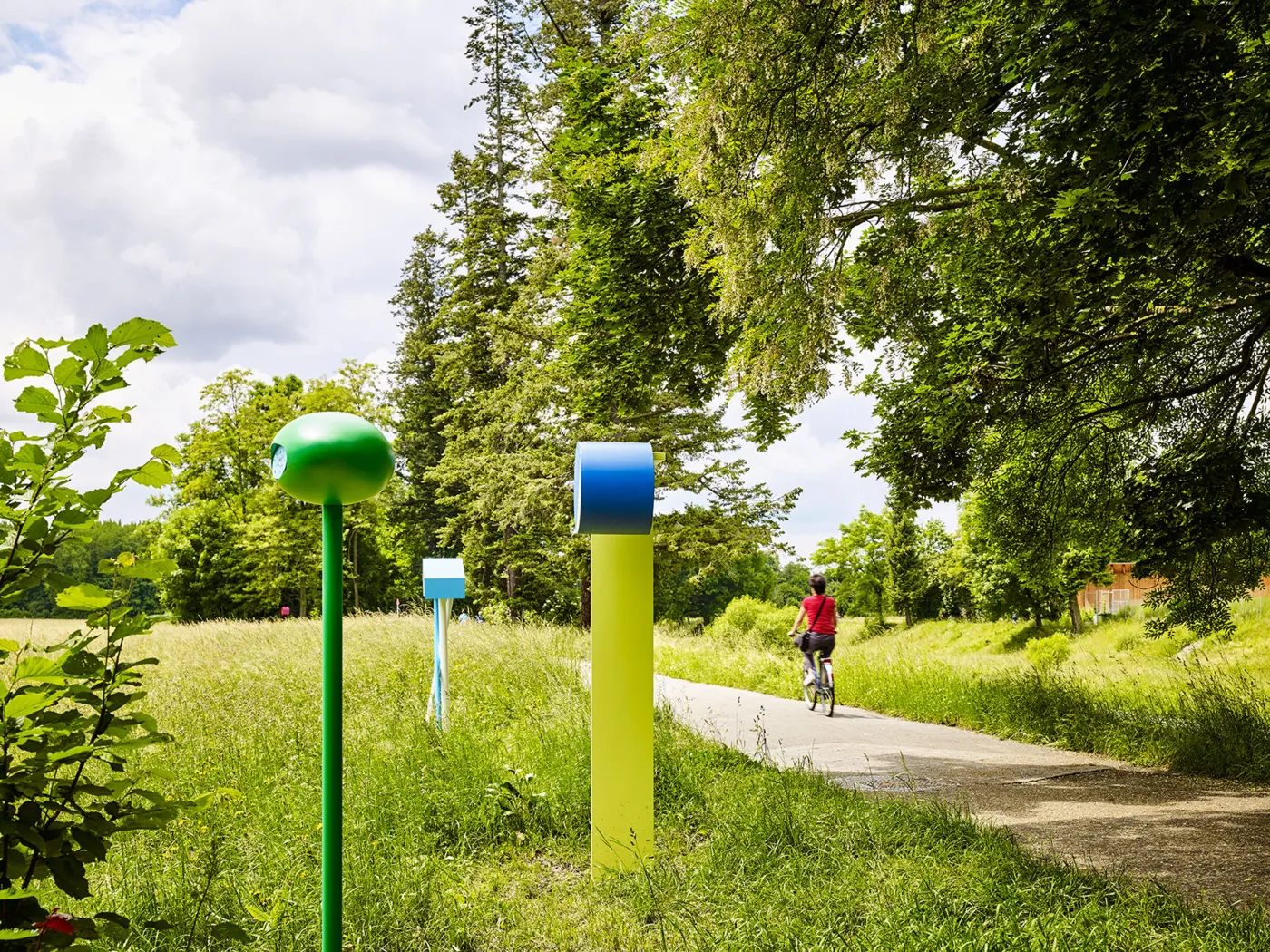 Wie nahe sich die Fondation Beyeler und der Vitra Campus sind, zeigt die Verbindung der beiden Kulturstätten: Der Rehberger-Weg «24 Stops» führt dich seit 2016 entlang von 24 Skulpturen des Künstlers Tobias Rehberger durch die Landschaft von Riehen nach Weil. Rund fünf Kilometer lang ist der Weg, der vom Berower Park über das Naturbad Riehen und durch die Weinberge des Tüllinger Hügels verläuft. Immer wieder kommst du an einem wundersamen Objekt vorbei, das eigens für diesen Ort von Tobias Rehberger kreiert wurde. Möchtest du die Kunstwerke auf eigene Faust entdecken, dann stattest du dich am besten mit der Wanderkarte aus, die in der Fondation Beyeler und auf dem Vitra Campus kostenlos ausliegt. Für die kleinsten Spaziergängerinnen und Spaziergänger wurde extra ein Kinderheft kreiert, welches ebenfalls in den beiden Kunstinstitutionen abgegeben wird.