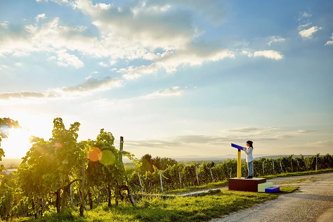 Für alle, die mehr wissen wollen, bieten die Fondation Beyeler und das Vitra Design Museum geführte Spaziergänge, Vollmondführungen oder Führungen mit Weinprobe an. So bekommst du wahlweise die einzelnen Objekte im landschaftlichen Kontext erklärt, erfährst Interessantes über die Besonderheiten des Schlipfs am Tüllinger Berg oder über die Geschichte von Weil am Rhein und kannst bei Nacht auf das beleuchtete Dreiländereck blicken. Bei allen Führungen ist die Rückreise zum Ausgangspunkt mit einem Shuttle inklusive.