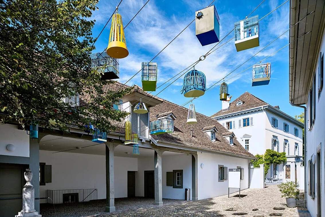 Aufgebrochene Vogelkäfige, ein Bienenhaus, ein Unterstand, eine Glocke, eine Strassenlampe, ein Brunnen, eine Kuckucksuhr, ein Hochsitz: Zwischen der Fondation Beyeler in Riehen und dem Vitra Design Museum in Weil am Rhein verläuft der vom Deutschen Bildhauer Tobias Rehberger gestaltete «Rehberger-Weg». 24 Kunstobjekte gibt es hier entlang des Weges zu entdecken – nicht alle sind auf Anhieb als Kunst erkennbar, deshalb wird der grenzüberschreitende Spaziergang gern ein wenig zur Schnitzeljagd. Rehbergers Kunst darf angefasst, betreten, bestiegen werden, sie dient als Schatten, als Wasserspender oder als Ausguck, ist verbindend und charmant und erreicht so junge, alte, kunstaffine wie auch kunstferne Menschen.