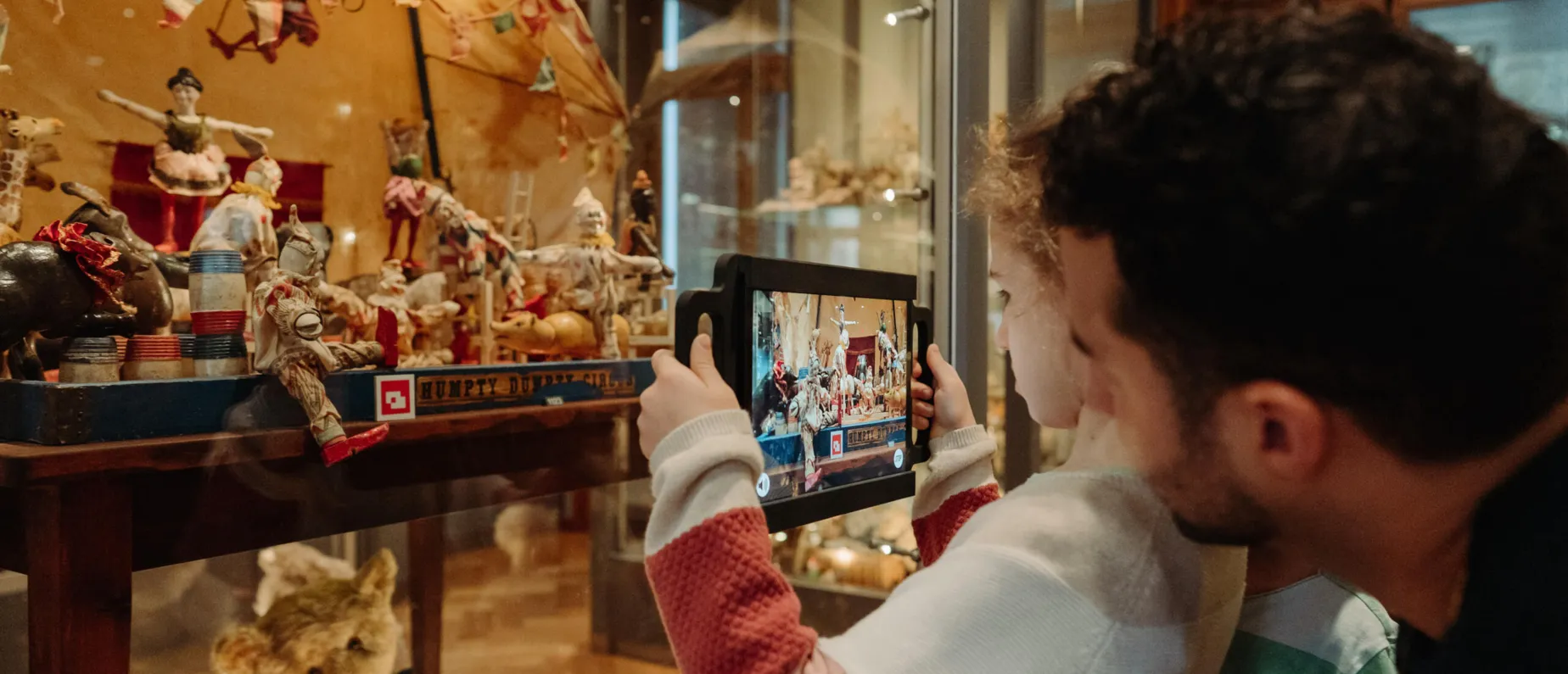 Mit «Augmented Reality» geht das Spielzeug Welten Museum Basel mit der Zeit und ermöglicht einen Zugang zu einer Welt, die über den herkömmlichen Museumsbesuch hinausgeht. Auf der animierten Tour durch die Ausstellung erzählt ein Teddybär von seiner abenteuerlichen Entstehungsgeschichte, im Kochtopf der Puppenstube dampft eine Basler Mehlsuppe und sogar die Titanic fährt vorbei: Die Sammlung des Spielzeug Welten Museum Basel wird lebendig – und somit völlig neu erlebbar gemacht! Mit Hilfe eines Tablets entwickeln die ausgestellten Museumsobjekte ein Eigenleben und geben spielerisch neue Einblicke in verschiedene Themen.