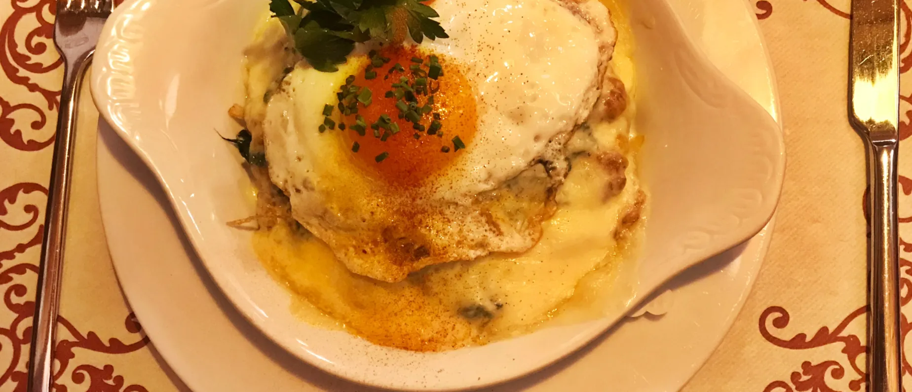 Wir entscheiden uns aber trotzdem für die «Röschti Florentine mit Spinaat und Kääs, obedruff e Stierenaug» (Letzteres ist übrigens ein Spiegelei). Und hauen diese ratzfatz weg.