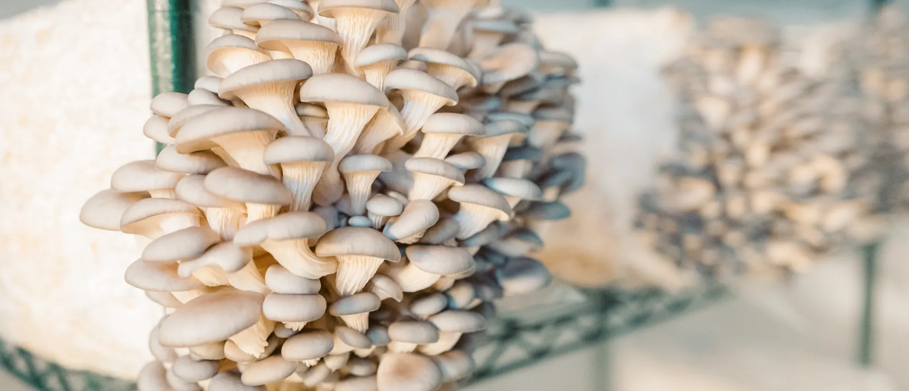 Vor neun Jahren fing David an, Pilze zu züchten. Ohne vorher irgendetwas mit Pilzen am Hut zu haben. «David konnte man noch nicht mal zum Pilzsammeln im Wald überreden», schmunzelt Kaspar, der 2018 zum Team gestossen ist. Doch irgendwann sah David zufällig ein Youtube-Video über einen, der Pilze züchtet, das hat ihn neugierig gemacht. Er überredete seinen Kollegen, das mal auszuprobieren und so fingen sie an, bei David im Keller, Pilze zu züchten. Erst seit 2017 züchten sie als GmbH professionell Pilze, mittlerweile können sie davon leben. «Ich habe zwar Biologie studiert, aber dennoch war es absolutes Neuland und wir mussten viel lesen und ausprobieren», erinnert sich David, der damals in der Pathologie gearbeitet hat. Je mehr sie jedoch über Pilze lasen, desto mehr faszinierte sie die Welt dieser aussergewöhnlichen Lebewesen. Die Leidenschaft wuchs also mit der Zeit. «Man weiss vieles noch gar nicht, aber Pilze haben z.B. unglaubliche Strategien entwickelt, um zu überleben,» so Kaspar. Tatsächlich fand vor kurzem ein Wissenschafter sogar heraus, dass Pilze kommunizieren und zwar recht redselig, wobei der Informationsfluss in den Myzel-Netzwerken dem von Neuronen ähnele. Etwa 50 Wörter hat er ausgemacht. Pilze sind also wahre Quasselstrippen. Soweit, um mit ihren Zöglingen zu kommunizieren, sind die jungen Pilzzüchter noch nicht, allerdings haben sie durchaus Eigenheiten ausgemacht. So müssen sie für den heiklen Shiitake schon mal ein Gewitter imitieren, um ihn zum Fruchten zu bewegen. «In der Natur geht der Fruchtkörper bei einigen Pilzen erst auf, wenn dieser die Vibration des Gewitters spürt», erklärt David. Der Pilz wird also kurzerhand in seiner Tüte durchgeschüttelt, wenn er so weit ist. Sind das schon Allüren oder ist das noch Genügsamkeit?
