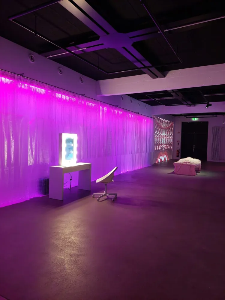Die Kunstschaffenden setzen sich auf ganz unterschiedliche Weise mit dem Einfluss von Technologie auf unsere Körper und Schönheitsideale auseinander. Da gibt es das Live-Video einer Schönheits-OP, den nachgestellten Chat auf einer Dating-App – inklusive oberkörperfreier Fotos – oder den frei erfundenen Avatar, der möglichst viele Schönheitsideale in sich zu vereinen versucht und dabei zum obskuren Wesen wird. Noch bis am 18. August kannst du in diese abstruse Welt, die durchgehend in ein rosa Licht getüncht ist, eintauchen und dir selbst ein Bild davon machen. Und danach entscheiden, ob du beim nächsten Selfie-Post auf Instagram auf die Filterfunktionen verzichten willst.