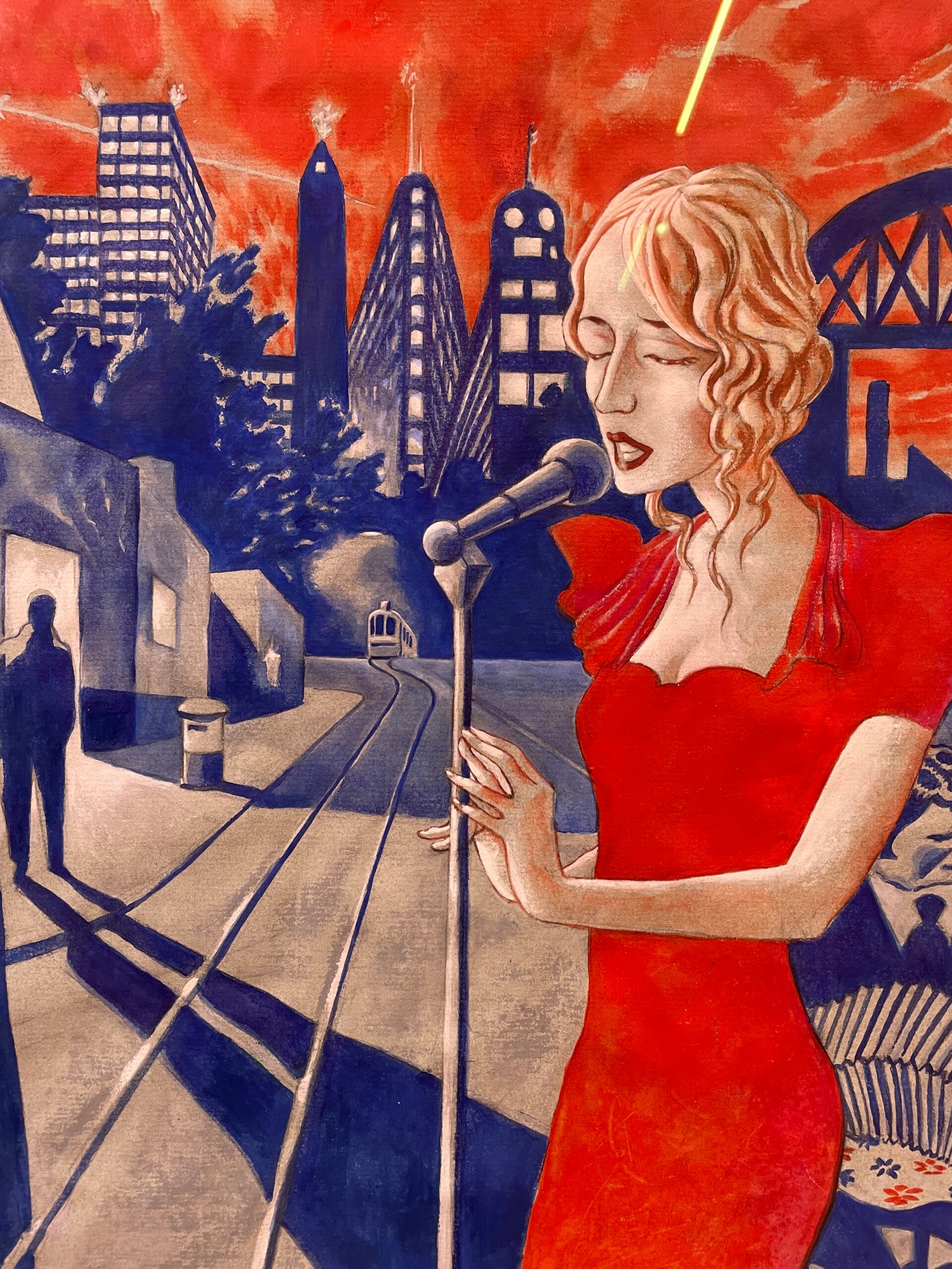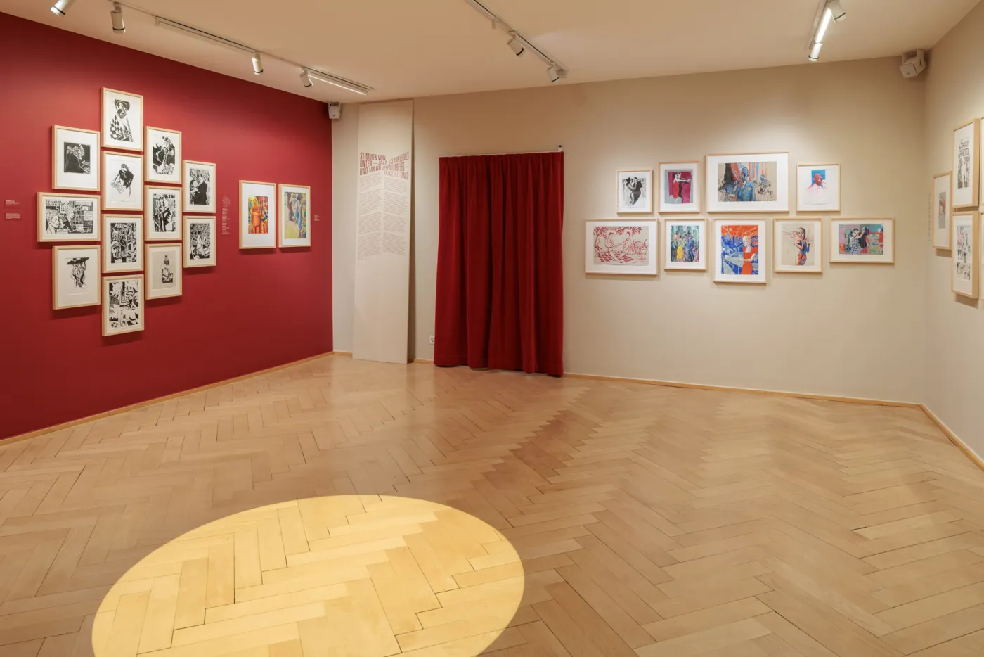Nach diesem Ausflug in die Natur tauchen wir ab in die lebhaften Jazz-Clubs von Buenos Aires. In einem mit roten Samtvorhängen eingekleideten Ausstellungsraum mit Scheinwerferkegel in der Mitte kannst du wilde Partynächte, die Jazz-Vibes und die leidenschaftlichen Tango-Tänze förmlich spüren. Das Cartoonmuseum inszeniert damit Muñoz' Sehnsucht nach dem multikulturellen Lebensgefühl seiner Heimat Argentinien. Die Liebe zum Jazz kommt besonders schön und feinfühlig in seiner gezeichneten Biografie der Sängerin Billie Holiday zum Ausdruck. Ihre Musik begleitete Muñoz sein Leben lang und sollte in seinen zahlreichen Werken immer wieder auftauchen und die Stimmung beeiflussen. Holiday steht dabei für die Stimme der Unterdrückten, der Ausgestossenen, der Frauen und der afroamerikanischen Menschen – gleichzeitig strahlt sie Schönheit und Stärke aus, die sehr inspirierend auf Muñoz wirkten. Diese starke Symbolik Holidays Stimme bildet eine Parallele zu seinen Werken, welche ebenfalls vor dem Hintergrund des Leids entstanden sind, das sein Heimatland unter den Militärdiktaturen durchlebte.