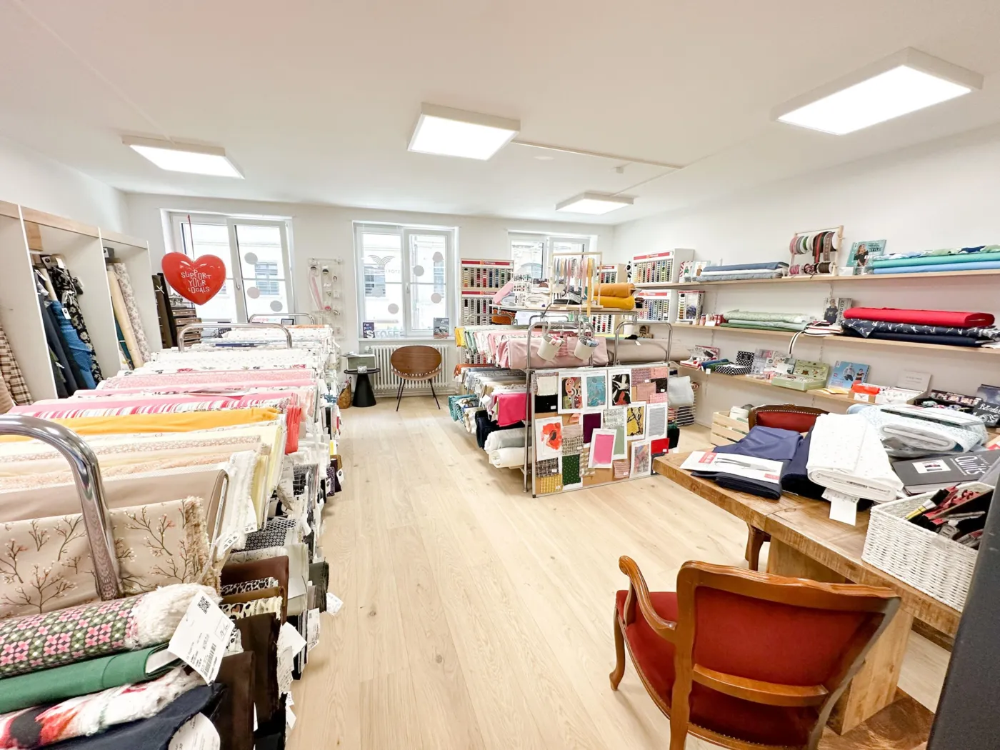 Deine Nähmaschine steht bereit und die kreativen Ideen sind skizziert – was dir fehlt, sind die passen- den Stoffe dazu? Dann bist du in diesem kleinen Stoffparadies mit grosser Auswahl richtig: Von Baumwolle über Chiffon bis hin zu Leinen und Satin fehlt es dir im modernen und familiengeführ- ten Laden an nichts. Ebenso findest du eine Aus- wahl an «Imperfect-Stoffen»; Stoffe, die vor dem Mülleimer gerettet werden und vielleicht bei dir auf der Nähmaschine landen.