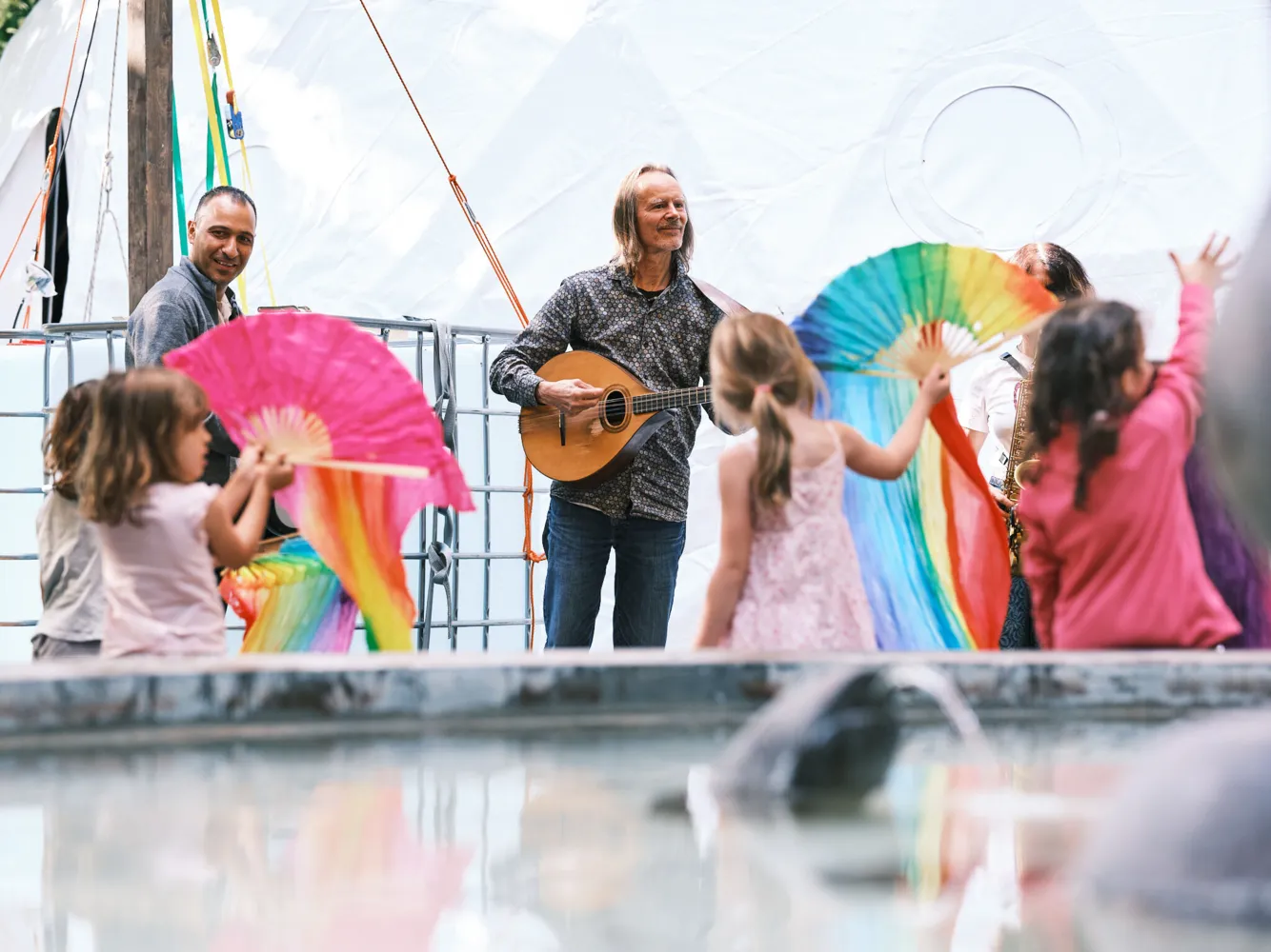 Über drei Wochen hinweg gibt es fast täglich Programm mit internationalen Künstlerinnen und Künstlern, mit lokalen Produktionen und Mitmachangeboten. Das HIMMELSZELT ist ein Begegnungsort mitten in der Stadt, der Kinder, Familien, Nachbarinnen und Nachbarn, Musik- und Theaterfans vereint. Hier kann jeder selber kreativ werden oder gebannt zusehen und lauschen. Wer sich vorgängig für den Workshop angemeldet hat, kann mit Theaterschaffenden ein eigenes Stück entwickeln. Schauspielerinnen erzählen spannende Geschichten von starken Kindern und zwischen den Programmpunkten gibt’s Getränke und Snacks zum Selbstkostenpreis.