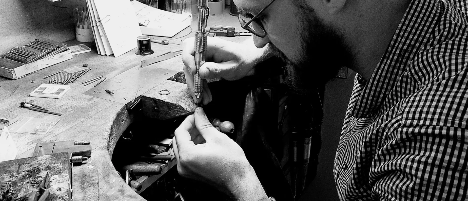 Pro Jahr erreichen mich circa 50 Bewerbungen – wovon ich ungefähr 40 direkt ablegen kann, da auch deren Verfasser*innen eine romantische Vorstellung von unserem Beruf haben. Die Arbeit als Goldschmied ist aber ganz klar ein Handwerksberuf. In der Werkstatt ist es anstrengend, die Finger werden schmutzig, man sitzt den ganzen Tag fokussiert an seinem Platz. Abgesehen davon steht bei uns die Kundenberatung im Zentrum. Diese gemeinsame Entwicklung finde ich persönlich extrem spannend und schön.