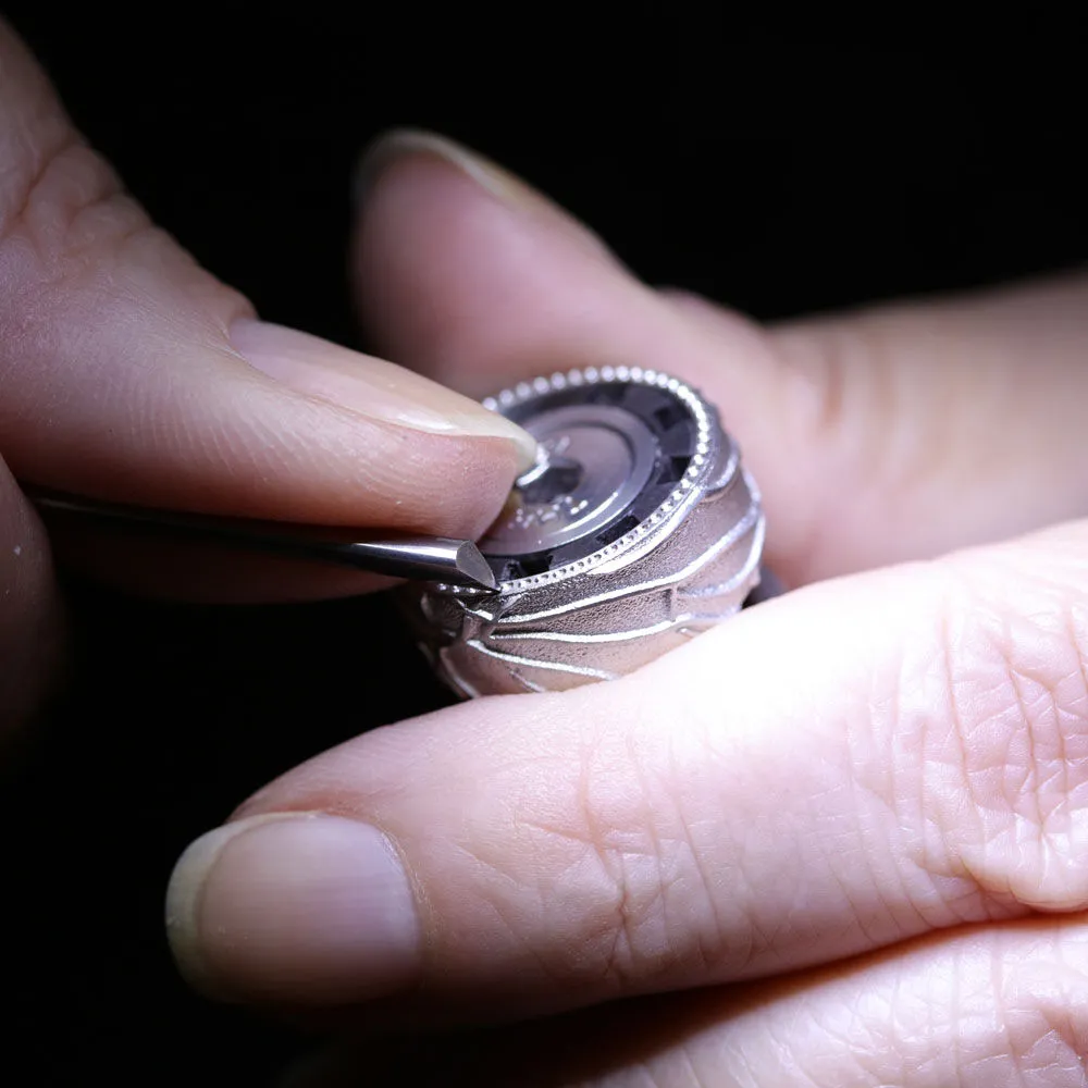 Es ist eigentlich recht einfach: Beim ersten Gespräch machen wir kostenlos Retina-Fotos und wählen die schönsten Ausschnitte zusammen aus. Unsere Kundinnen und Kunden können diverse Stile und Materialien probieren, danach erstellen wir eine photorealistische 3D-Visualisierung, damit sie vor dem Auftrag genau wissen, wie ihr Schmuckstück aussehen wird. Je nach Projekt dauert es wenige Wochen bis zur Übergabe des Unikats.