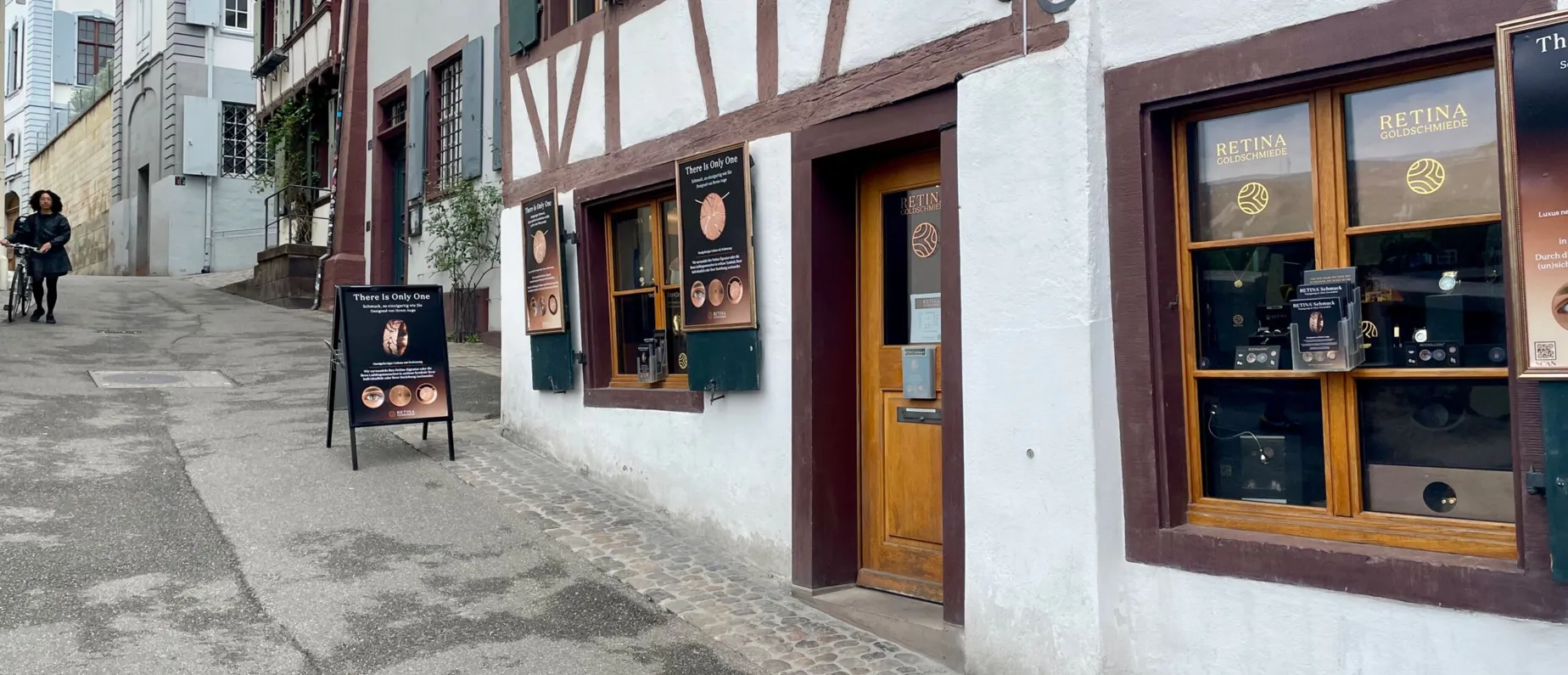 Dass sich hinter kleinen Türen grosse Ideen verbergen können, beweist das charmante Ladengeschäft von Retina Design am Rheinsprung 10. Als das Geschäftsleitungs-Paar Stefan und Marlen Wacha vor bald 20 Jahren das unauffällige, kleine Atelier mit Blick auf das Kleinbasler Rheinufer bezogen hat, waren sie überzeugt, die vorbeiflanierenden Baslerinnen und Basler sowie Touristen aus aller Welt mit ihren Schmuckkreationen begeistern zu können. Damals noch als Goldschmiede «kleine Rheinperle» bekannt, wurde das Geschäft vor rund zweieinhalb Jahren in Retina Design umbenannt. Dieser Name bringt ihr Schmuckkonzept seither noch stärker zum Ausdruck – eine einzigartige Idee, wofür ihre Kundinnen und Kunden gerne den steilen Aufstieg am Rheinsprung auf sich nehmen. BaselLive stellt dir die beiden kreativen Köpfe, Stefan und Marlen Wacha, und das Konzept hinter Retina Design genauer vor.