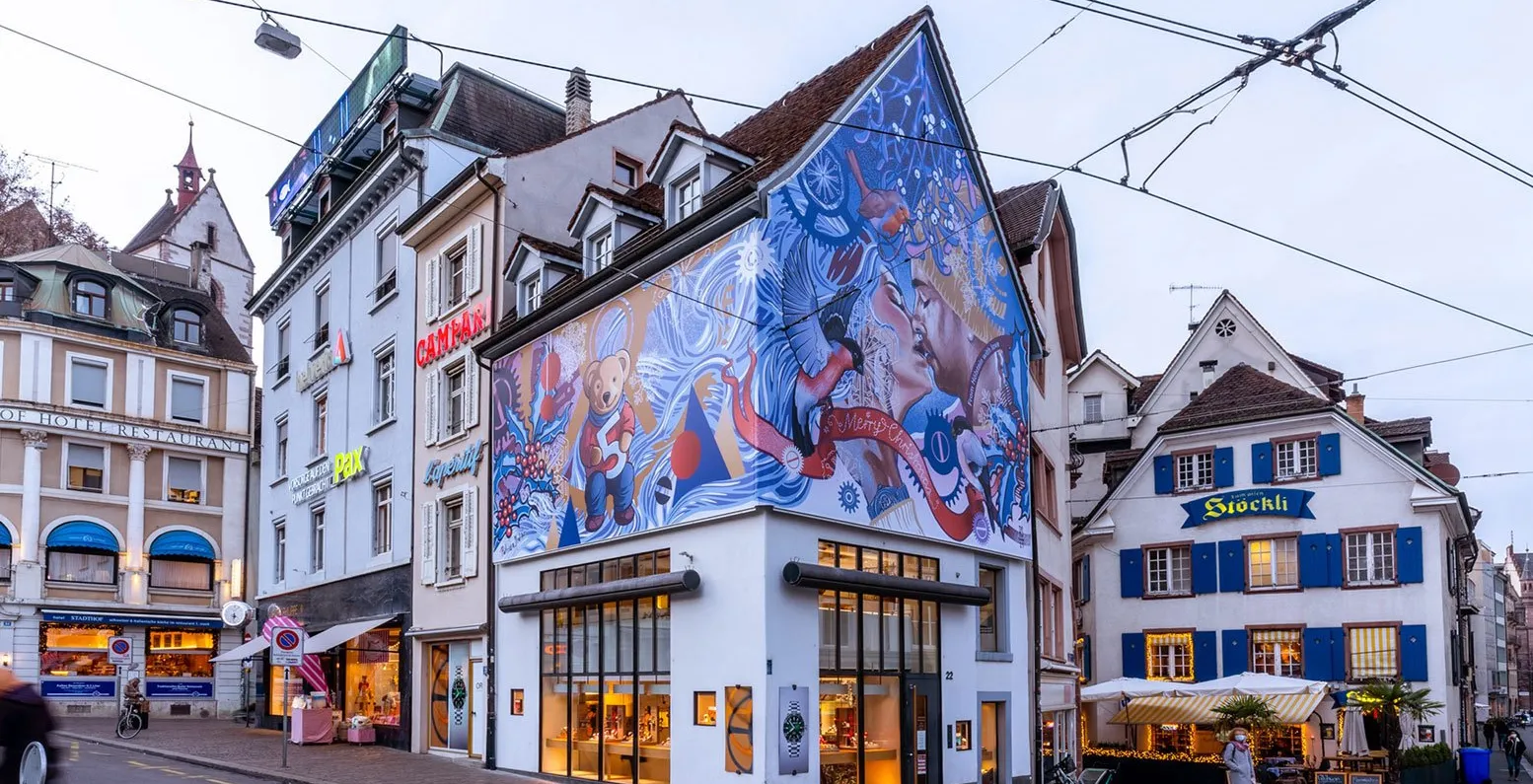 Egal von welcher Seite du dich letztes Jahr zu Weihnachten dem Barfüsserplatz genähert hast – das gigantisch grosse, wunderschöne Kunstwerk rund um das Gebäude von Maison Oris war nicht zu übersehen. Auf über 80m2 erinnerte dich ein leidenschaftlicher Kuss an das Fest der Liebe. Für gewöhnlich wandern solche Weihnachtsdekorationen im Januar dann jeweils wieder in den Keller oder werden entsorgt. Allerdings nicht so bei ebenjenem Kunstwerk der Basler Künstlerin Patrizia Stalder.