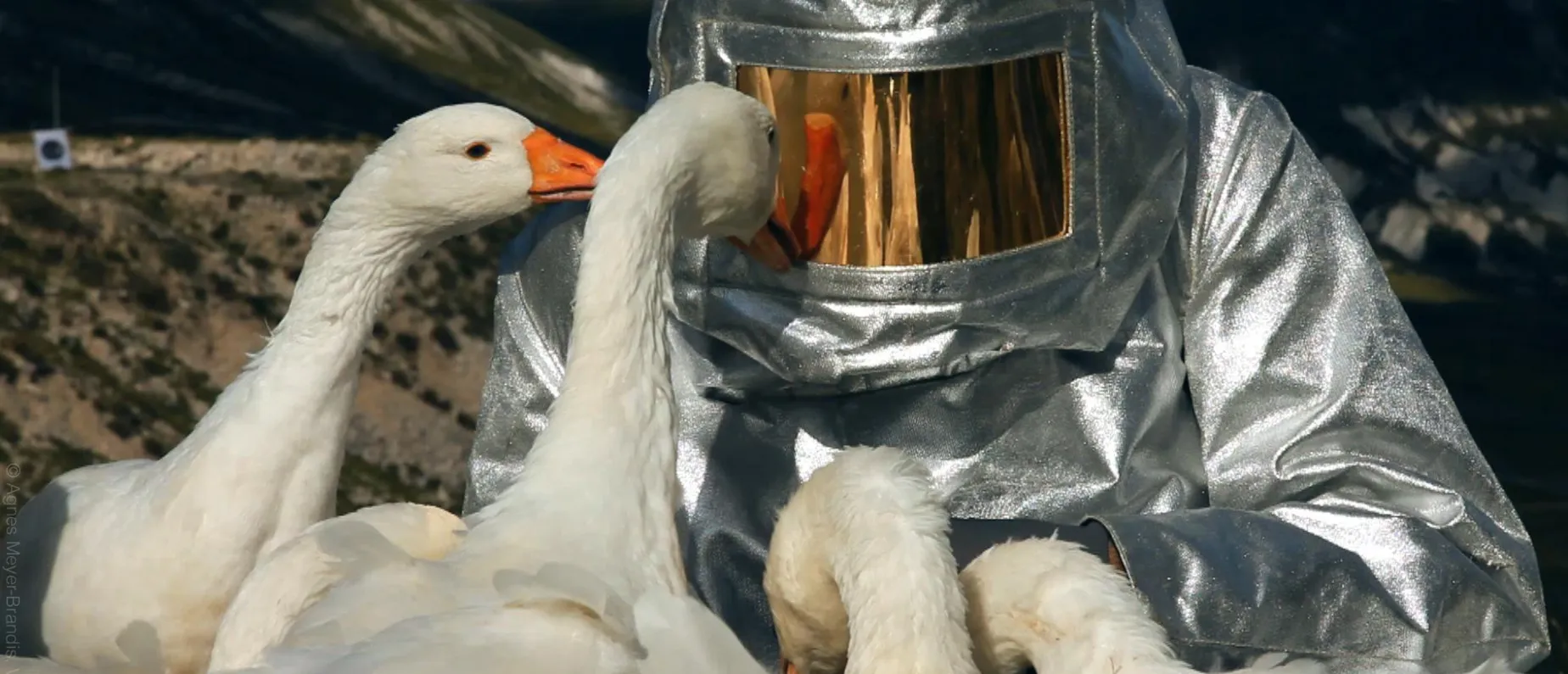 Agnes Meyer-Brandis ist Forscherin und Künstlerin zugleich. Sie untersucht Wolkenkerne in der Schwerelosigkeit eines Parabelflugs. Oder die Migration von Bäumen. Und sie beobachtet und trainiert Gänse, mit denen sie zum Mond fliegen will. Sie selbst nennt das Ganze «Erforschung der Welt und ihrer Realitäten durch den Einsatz von erweiterten ‚fantastischen’ Realitätsanwendungen» und präsentiert dir nun ihre Ergebnisse in einer grossen Einzelausstellung, ihrer ersten in der Schweiz.