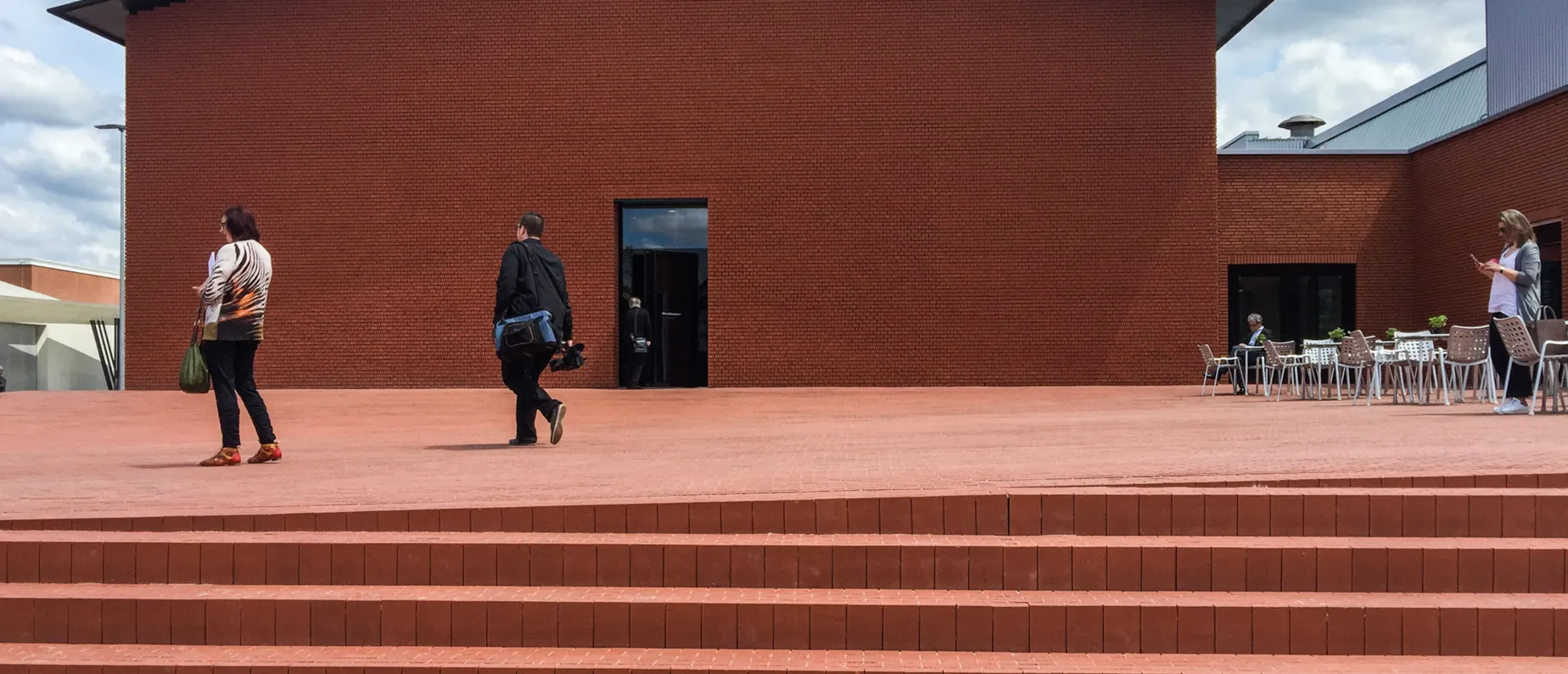 Ich probiere diese neue Anreisemöglichkeit gleich einmal aus und gelange durch einen bepflanzten Durchgang zum Vitra Campus und zum atemberaubenden Neubau genannt «Schaudepot». Das Schaudepot besticht nicht nur als weiteres architektonisches Highlight auf dem Gelände, es lässt auch das gegenüberliegende Feuerwehrhaus von Zaha Hadid in ganz neuem Licht erstrahlen. Über wenige grossangelegte Treppen gelangt man zum neuen Museumsgebäude, das lediglich aus einem Eingang als Öffnung besteht und komplett mit einer Backsteinhülle verkleidet ist. Es gemahnt an ein Depot in wörtlichem Sinne: die Designer-Preziosen werden sorgfältig konserviert; die der klassischen Form eines Hauses entlehnte Form des Gebäudes drückt zeitgleich eine bestimmte Art von Bescheidenheit aus.
