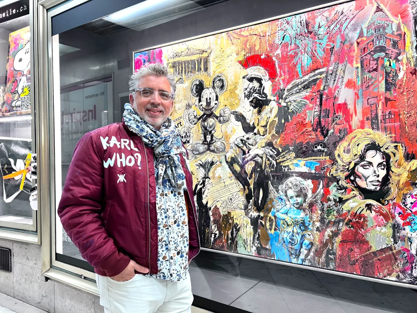 Der gelernte Reederei-Kaufmann wuchs in Kleinhüningen auf und arbeitet bis heute 100% auf seinem Beruf, auch wenn das grafische Gestalten immer seine Passion war. Vor zwei Jahren entwarf er für seinen Bruder ein Bild und erhielt danach – Social Media sei Dank - zahlreiche weitere Aufträge. «Offenbar habe ich mit meiner bunten Pop-Art bei vielen Leuten einen Nerv getroffen», erzählt Lakis. Auf der Suche nach einem Ausstellungsraum fand er den Showroom in der Rümelins-Passage. Sofort erkannte er die Schönheit dieses Ortes. Und wie unattraktiv er mit all den leeren Schaufenstern daherkommt.