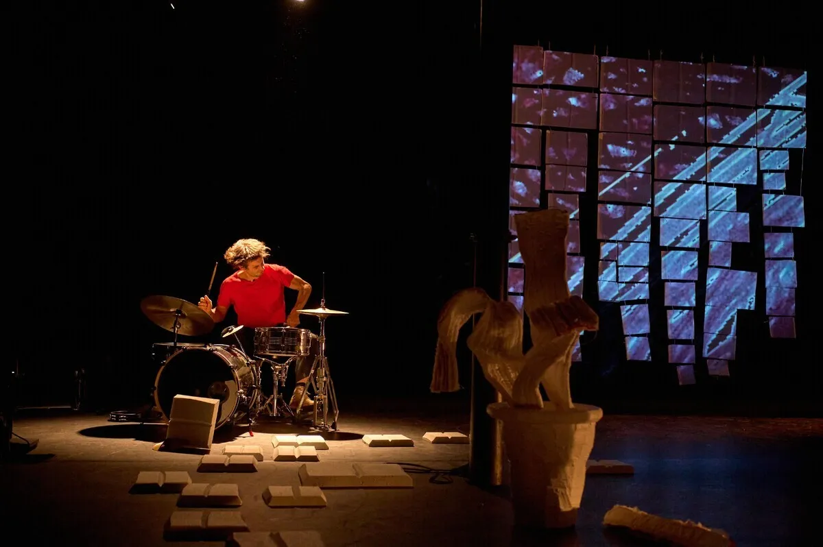 Mit im Gepäck hat er neben dem Schlagzeug auch jede Menge Skizzen- und Notizbücher. Und ADHS. Damit wurde er nämlich in seiner Jugend diagnostiziert, was seither sein Leben prägt, weil die Gesellschaft viele Erwartungen stellt, die nicht immer mit seiner Diagnose vereinbar sind. In der Kreativität hat Matz ein Ventil gefunden, er hat viele Notizbücher mit Gedanken und Skizzenbücher mit Bildern gefüllt und dabei herausgearbeitet, wo sich die eigene und die allgemeine Betroffenheit überschneiden und wo sie auch mal auseinanderragen. Dadurch entsteht auf der Bühne eine vielschichtige Reflexion, die sich zwischen lauten und sanften Tönen hin- und herbewegt und mit dieser Vielfältigkeit das Publikum abholt.