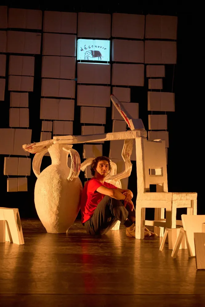 Wenn Matz Hoby auf die Bühne steigt, wird es abwechslungsreich und unvorhersehbar. Mal setzt sich der selbstständige Gestalter, Musiker, Schauspieler und Pädagoge ans Schlagzeug und haut mit den hölzernen Schlägern einen lauten Rhythmus in den Saal, dann werden wieder ganz ruhig Zeichnungen projiziert oder Texte vorgetragen. Mit «Livres Pour Survivre», seinem neuen Stück – das übrigens nur einen französischen Titel trägt, gesprochen wird Schweizerdeutsch – untersucht er dokumentarisch die Kreativität als Überlebensstrategie in einer Welt voller gesellschaftlicher Normen.